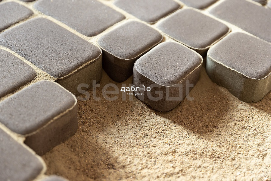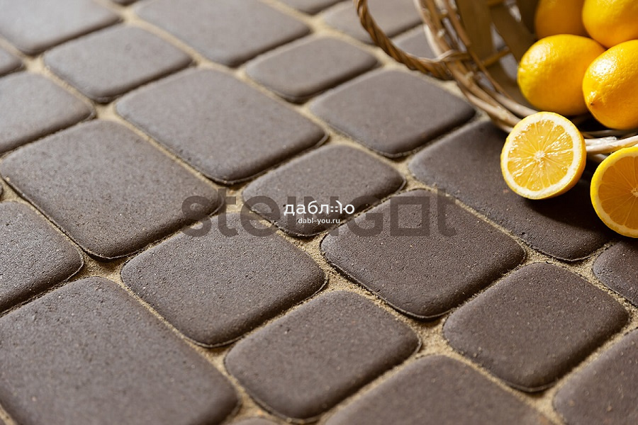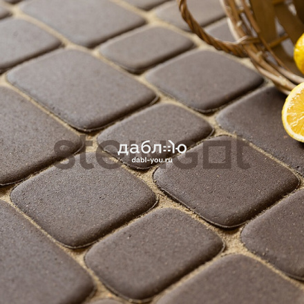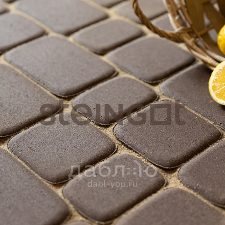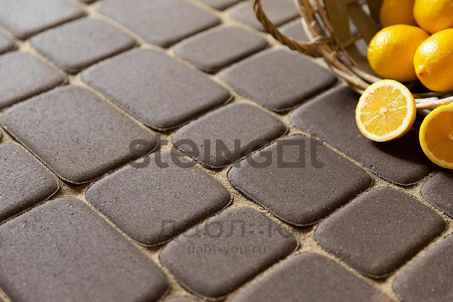 Брусчатка Steingot Классика темно-коричневая. Тротуарная плитка в классическим стиле с ярко выраженными фасками, состоящая из трех камней разных размеров, которые легко сочетать и создавать красивые узоры на мощении. Продажа брусчатки производится кратно целым поддонам!- Высота: 60 мм