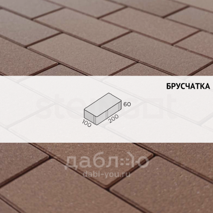 Брусчатка Steingot коричневая 200х100х60 (верхний прокрас, минифаска). Классическая форма брусчатки в новом исполнении - наличие фаски меньшего размера позволяет создать более ровное покрытие без швов, делая передвижение на ней более комфортным. Продажа брусчатки производится кратно целым поддонам!- Высота: 60 мм