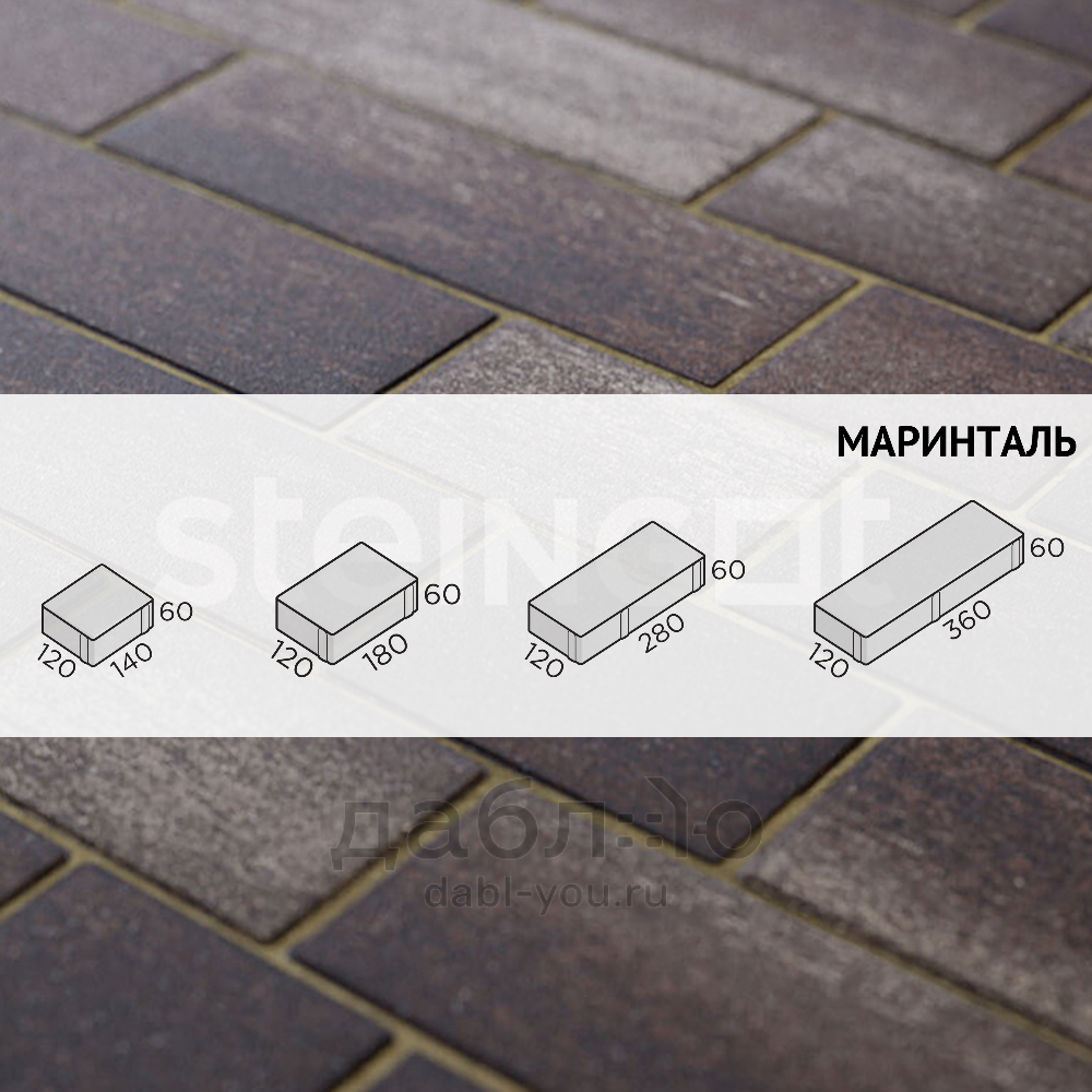 Брусчатка Steingot Маринталь Штайн Браун. Благодаря вытянутой форме камней позволяет создавать современные дизайнерские решения в мощении, лаконично вписывать тротуарное покрытие в естественный ландшафт. Продуманная геометрия каждого отдельного элемента позволяет использовать эту форму как на открытых пространствах и в парках, так и в уютных садах и стильных патио – любому из этих мест плитка придаст или дорогой и строгий, или элегантный и роскошный вид в зависимости от выбранного цвета и варианта раскладки. Продажа брусчатки производится кратно целым поддонам!- Высота: 60 мм