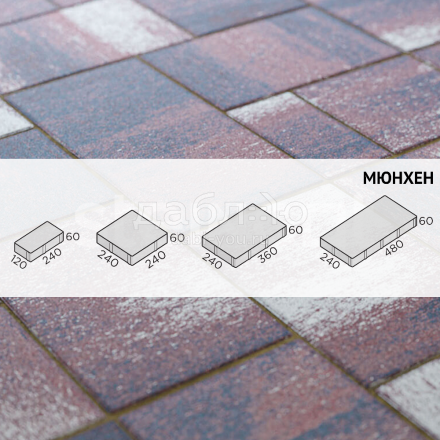 Брусчатка Steingot Мюнхен Аметист. Состоящая из четырех камней разного размера форма «Мюнхен» позволяет использовать при укладке огромное количество схем раскладки: линейную, разнонаправленную, паркетную и многие другие. Оригинальная форма, созданная специально для воплощения разнообразных и неповторимых дизайнов благоустройства. Продажа брусчатки производится кратно целым поддонам!- Высота: 60 мм
