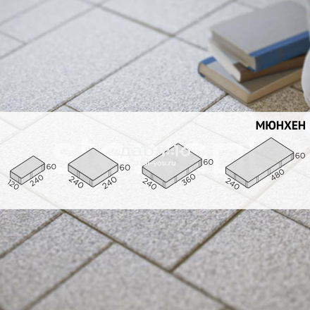 Брусчатка Steingot Мюнхен Loto Bianca. Состоящая из четырех камней разного размера форма «Мюнхен» позволяет использовать при укладке огромное количество схем раскладки: линейную, разнонаправленную, паркетную и многие другие. Оригинальная форма, созданная специально для воплощения разнообразных и неповторимых дизайнов благоустройства. Продажа брусчатки производится кратно целым поддонам!- Высота: 60 мм