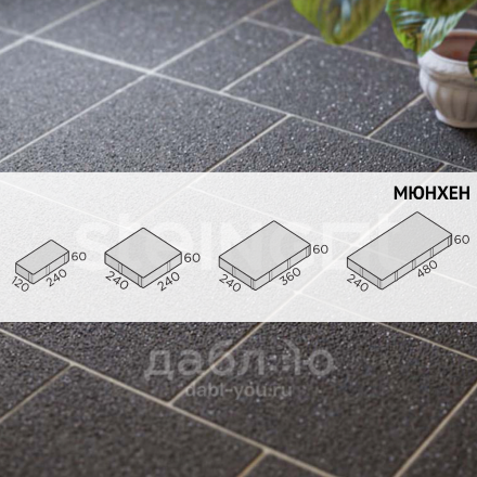 Брусчатка Steingot Мюнхен Stella Nera. Состоящая из четырех камней разного размера форма «Мюнхен» позволяет использовать при укладке огромное количество схем раскладки: линейную, разнонаправленную, паркетную и многие другие. Оригинальная форма, созданная специально для воплощения разнообразных и неповторимых дизайнов благоустройства. Продажа брусчатки производится кратно целым поддонам!- Высота: 60 мм