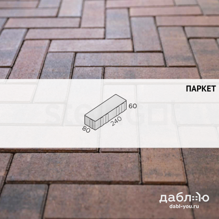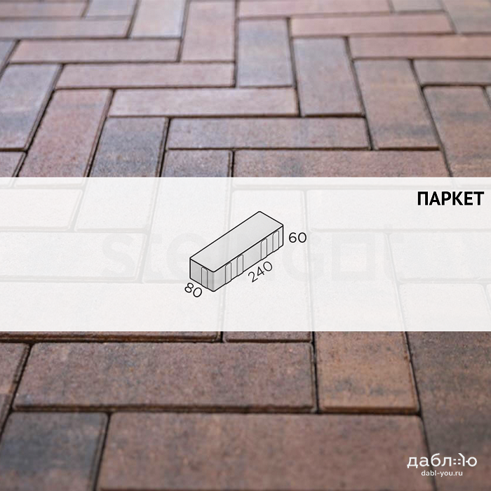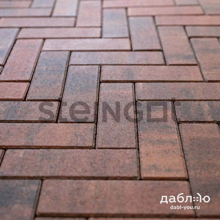 Брусчатка Steingot Паркет Клинкер. Уникальная форма этой тротуарной плитки дает возможность создавать так называемый традиционный узор "елочкой". Красивые расцветки дают возможность подобрать брусчатку на любой вкус. Продажа брусчатки производится кратно целым поддонам!- Высота: 60 мм