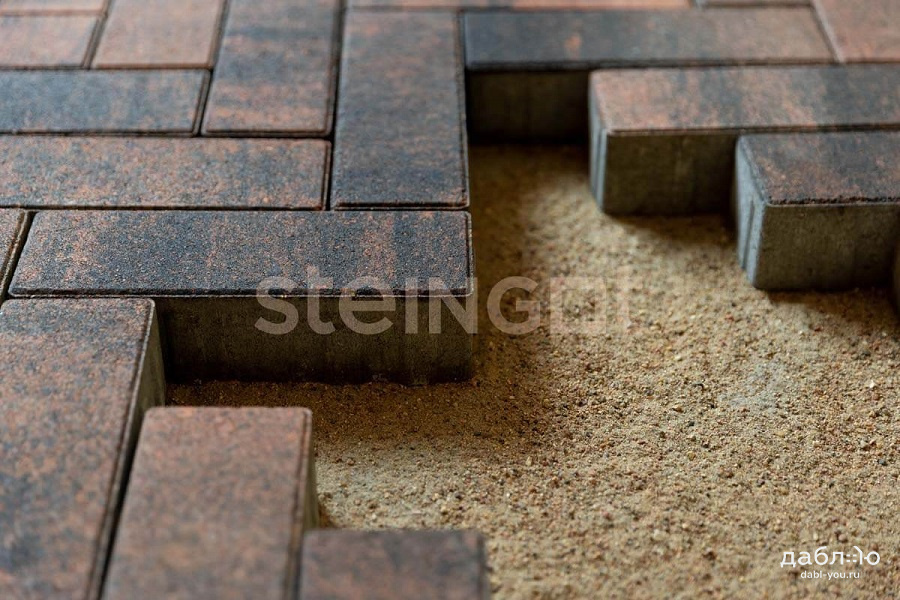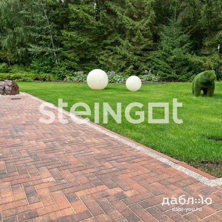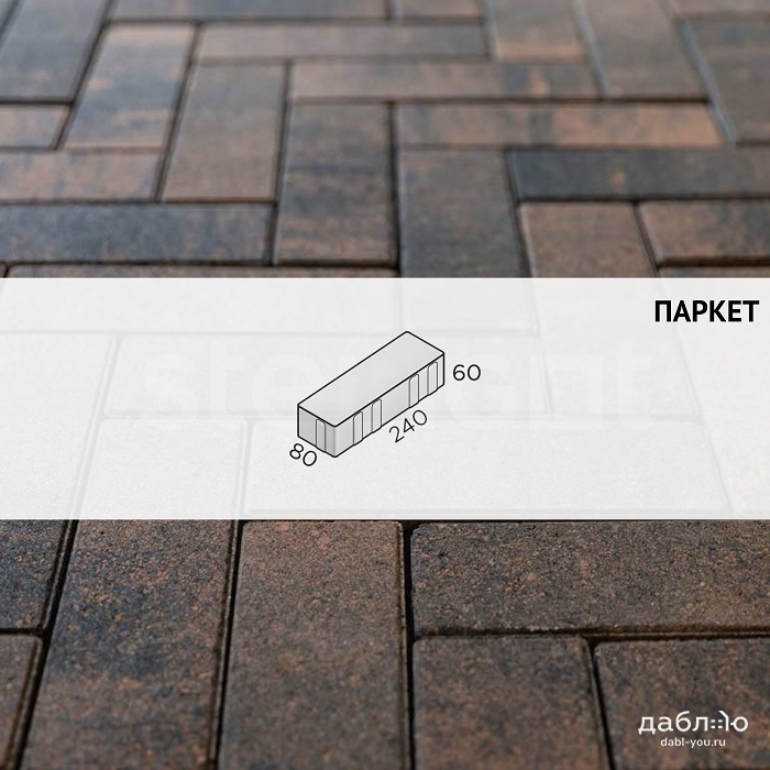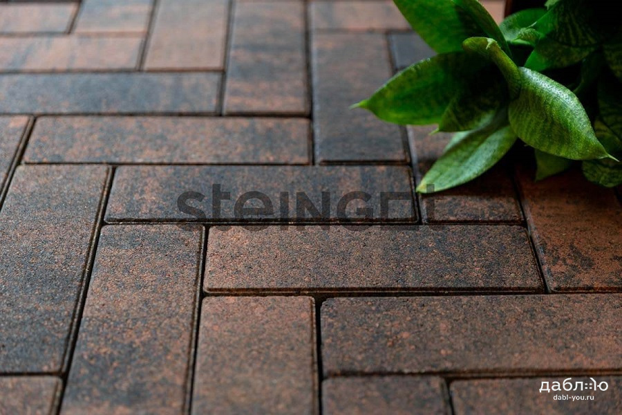 Брусчатка Steingot Паркет Тигр. Уникальная форма этой тротуарной плитки дает возможность создавать так называемый традиционный узор "елочкой". Красивые расцветки дают возможность подобрать брусчатку на любой вкус. Продажа брусчатки производится кратно целым поддонам!- Высота: 60 мм