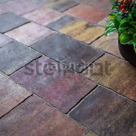 Брусчатка Steingot Старый город Терракота. Тротуарная плитка в форме из трех камней разных размеров отлично смотрится на мощении Вашего дома. Красивые и интересные оттенки помогают придать дому эстетичный вид и создать уютную атмосферу. Продажа брусчатки производится кратно целым поддонам!- Высота: 60 мм