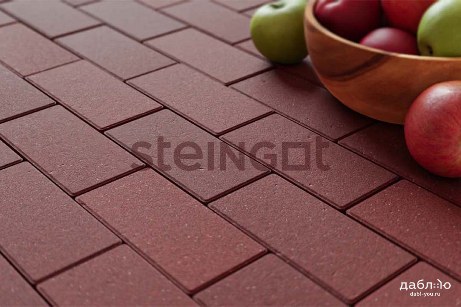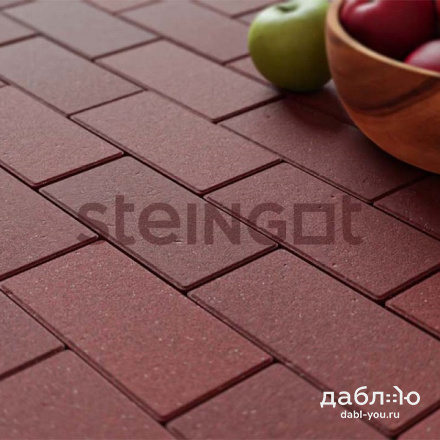 Брусчатка Steingot темно-красная 200х100х40 (верхний прокрас, минифаска). Классическая форма брусчатки в новом исполнении - наличие фаски меньшего размера позволяет создать более ровное покрытие без швов, делая передвижение на ней более комфортным. Продажа брусчатки производится кратно целым поддонам!- Высота: 40 мм