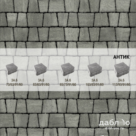 Брусчатка Выбор Антик Искусственный камень 3А.6 Шунгит. Готовое решение для любителей старины и роскоши. В одной коллекции собрана плитка пяти различных форм, что позволяет получить интересную выкладку, в том числе и круговую. Плитка создает гладкую, почти бесшовную поверхность, благодаря чему широко применяется на пешеходных площадях.Kоличество шт/м2: 138.3