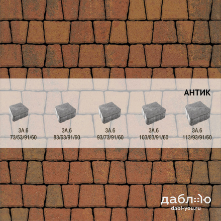 Брусчатка Выбор Антик Листопад 3А.6 Арабская ночь. Готовое решение для любителей старины и роскоши. В одной коллекции собрана плитка пяти различных форм, что позволяет получить интересную выкладку, в том числе и круговую. Плитка создает гладкую, почти бесшовную поверхность, благодаря чему широко применяется на пешеходных площадях.Kоличество шт/м2: 138.3