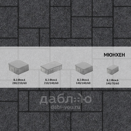 Брусчатка Выбор Мюнхен Стоунмикс Б.2.Фсм.6 Черный. Мультиформатная форма «Мюнхен» включает комплект из четырех камней разных размеров. Рисунок не имеет выраженной направленности, подходит как для мощения площадок, так и узких, криволинейных участков, без необходимости прерывания сплошной укладки.Толщина, мм: 60