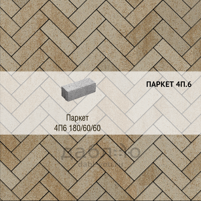 Брусчатка Выбор Паркет Искусственный камень 4П.6 Степняк. Бетонная тротуарная плитка из серии Паркет. Правильная форма этой плитки дает возможность создавать разные рисунки для мощения, при этом отлично сочетаясь с формами других коллекций плитки.Высота: 60 мм