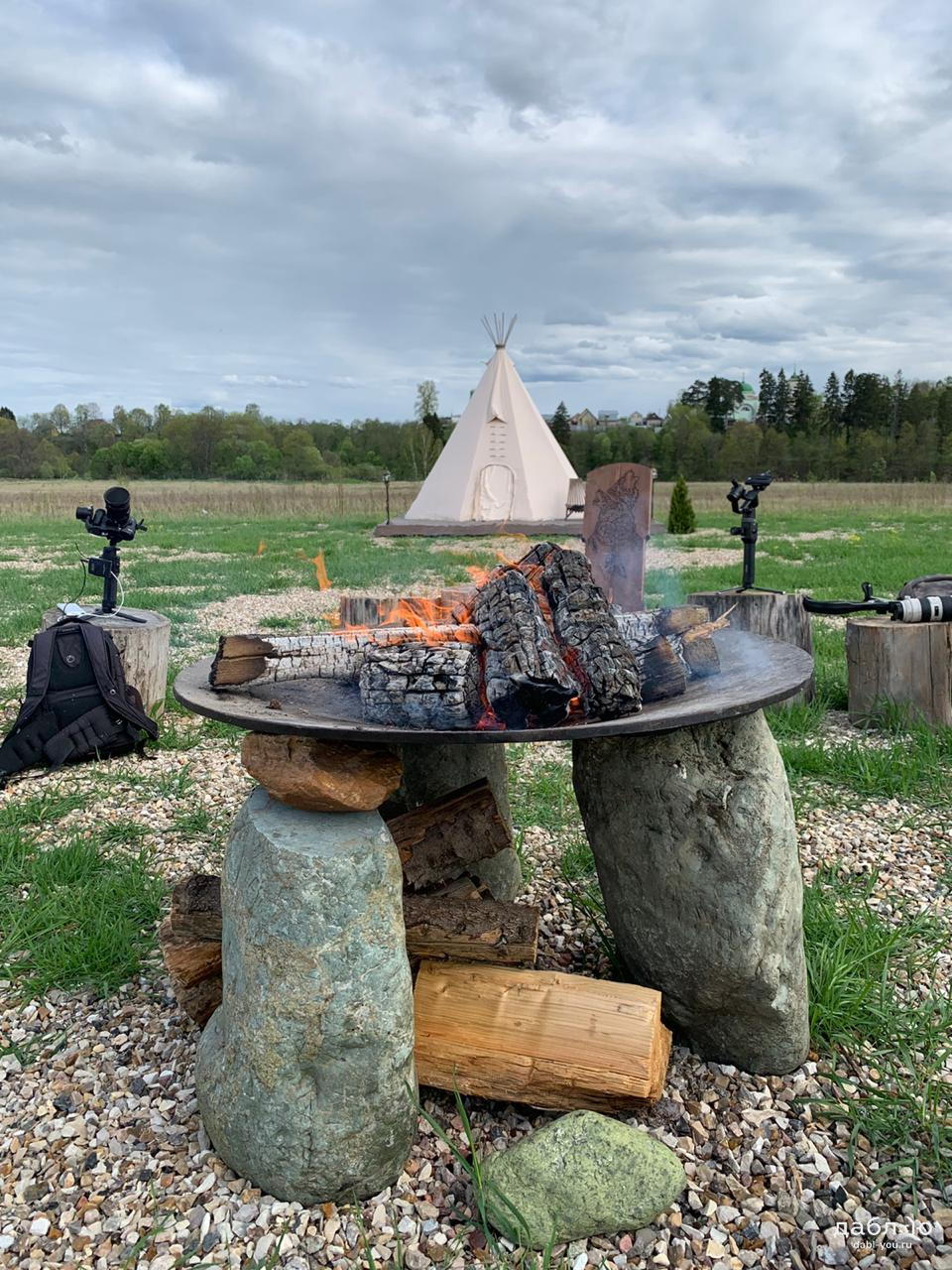 Чугунная чаша Concretika Plato A100. Очаги этой серии подходят для больших территорий, но за счет разнообразия оснований остаются универсальными. Благодаря плоской форме очага, зольник не требуется – остатки горения – угли и пепел легко удаляются небольшим совком или щеткой. Чаши серии PLATO больше выступают как элемент декора, готовить на них неудобно.Материал: чугун