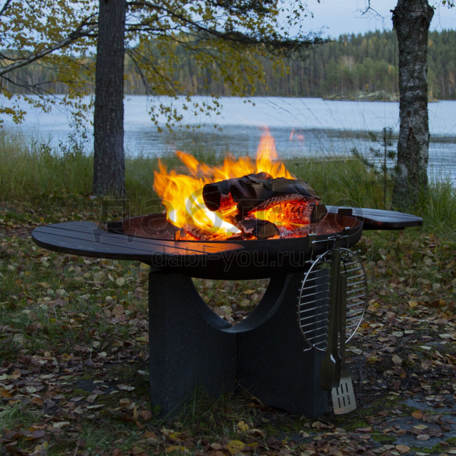 Чаши на высоком основании идеально подходят для установки на террасах, верандах: за счет высокого основания, температура под чашей не окажет термического воздействия на деревянные поверхности или газонную траву.