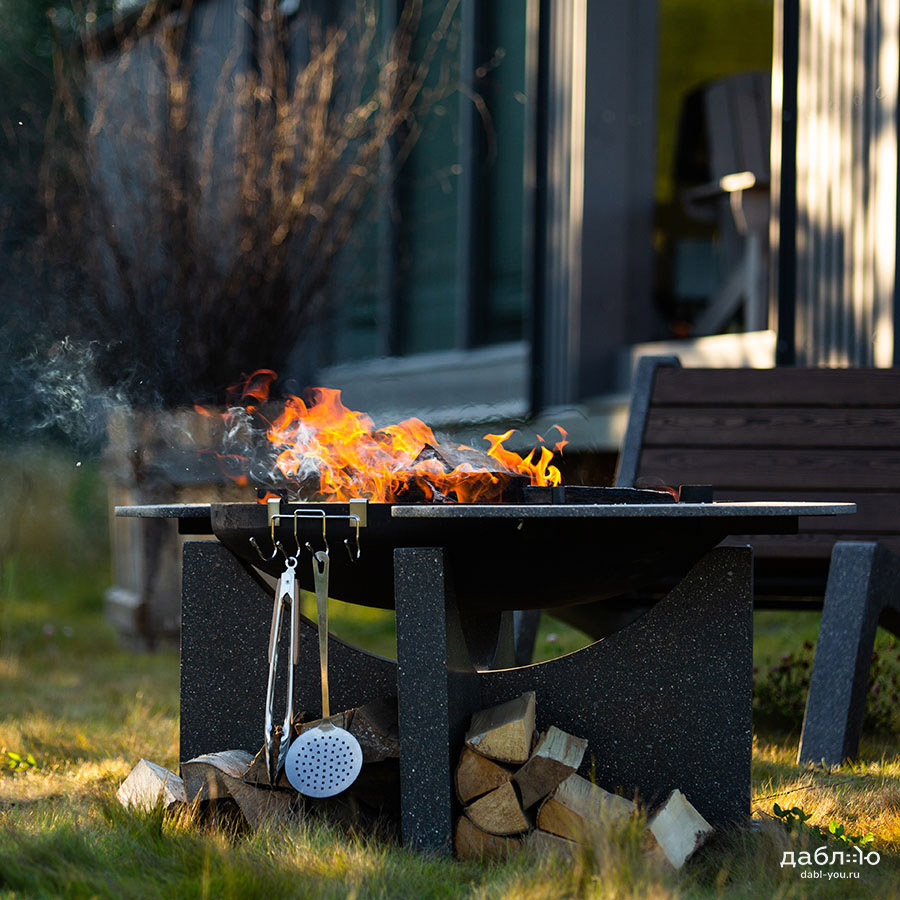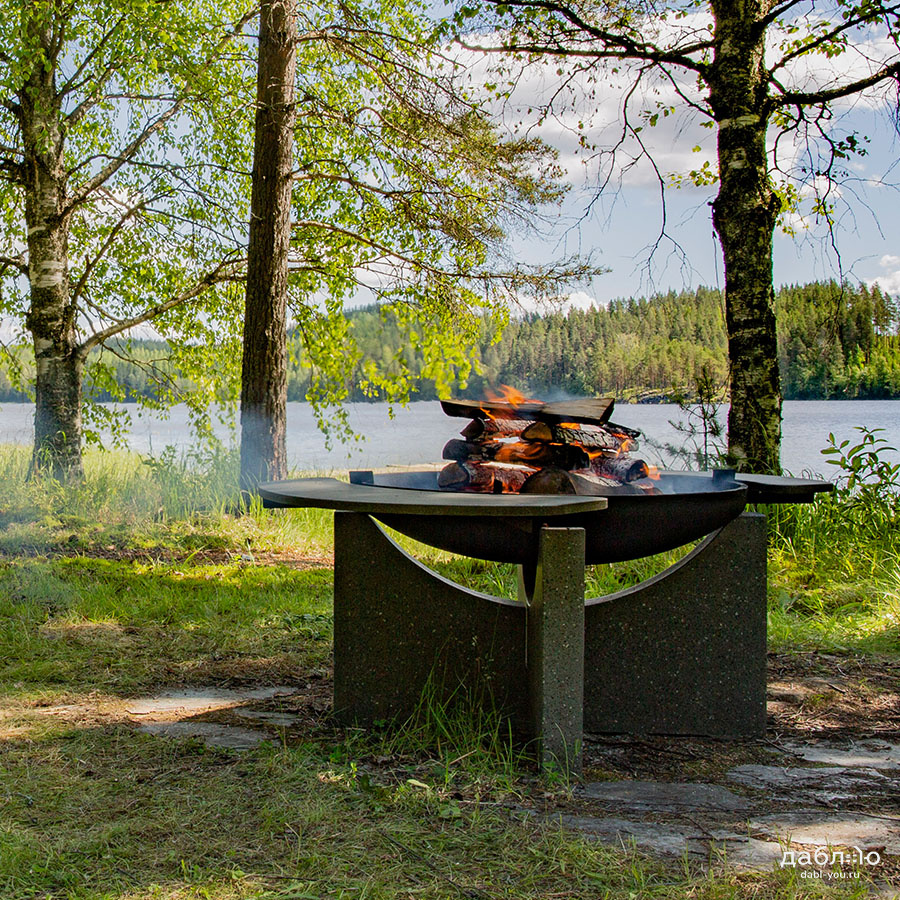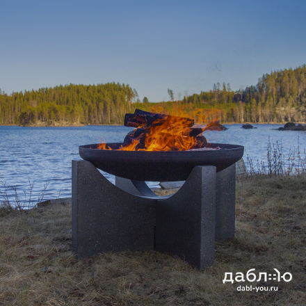 Чаша S80 представлена в двух вариантах: S80 и S80XL. Отличие в размере бетонной крестовины. Модель S80 имеет размеры каждой крестовины 70хН45 см, а модель S80XL размеры 90хН45 см. На некоторых фотографиях чугунная чаша больше крестовины, а на некоторых наоборот - крестовина больше чаши.Материал: чугун