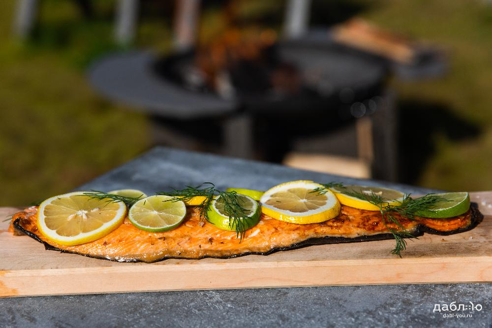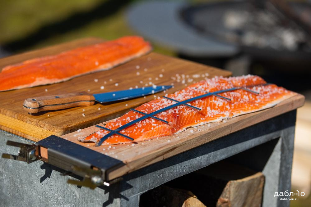 Рыба, приготовленная на доске, сразу готова к сервировке и на столе будет выглядеть удивительно аппетитно. После приготовления доску можно подать в качестве сервировочного блюда - на столе это смотрится особенно красиво!