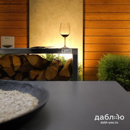 Дровница бетонная Concretika DR90. Дровницы сделаны в единой стилистике с подставками для чаш. Материал изготовления - фибробетон. Дровницы покрыты защитным составом, который позволяет использовать дровницы дома и на улице круглогодично.Материал изготовления - фибробетон