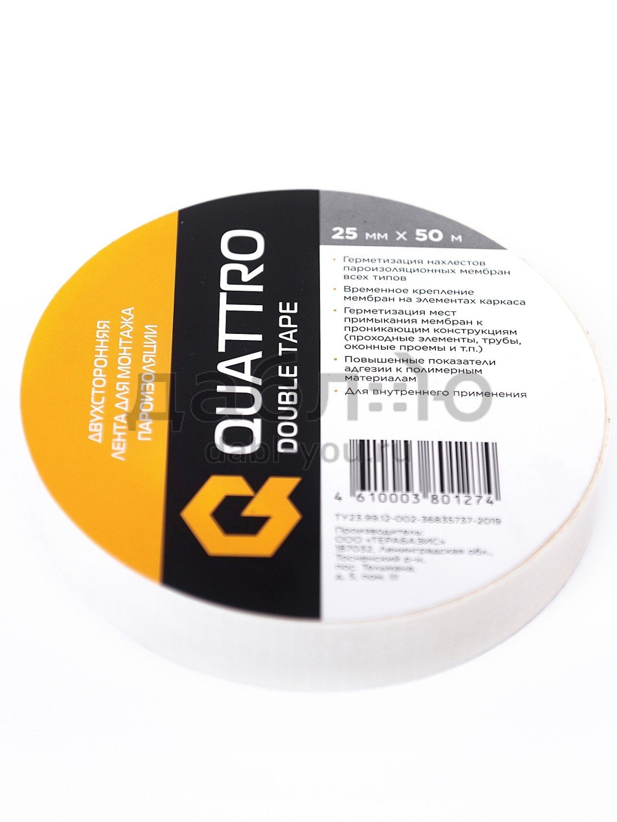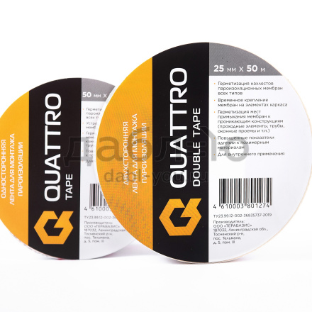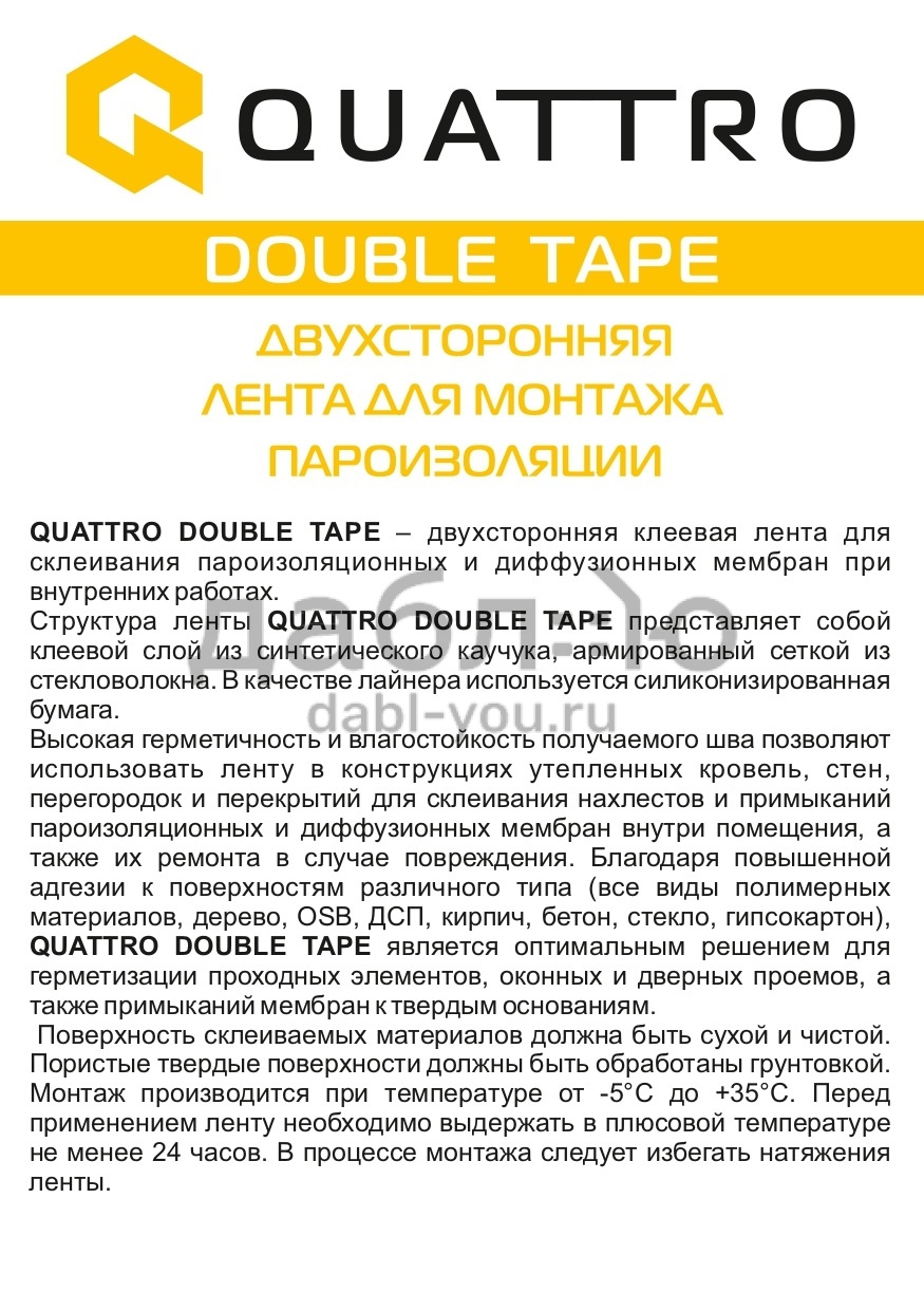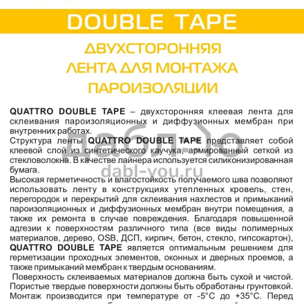 Двухсторонняя акриловая лента для монтажа пароизоляции Quattro Double Tape