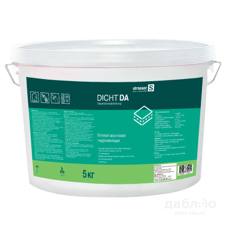 Эластичная гидроизоляция strasser DICHT DA, 5 кг. Готовая к применению акриловая паста для гидроизоляции стен и полов в душевых, ванных туалетных комнатах, кухнях, под керамическую плитку. Для внутренних работ.- трещиностойкость гидроизоляционного покрытия (толщина 1 мм), по ГОСТ 31383: не менее 3,0 мм