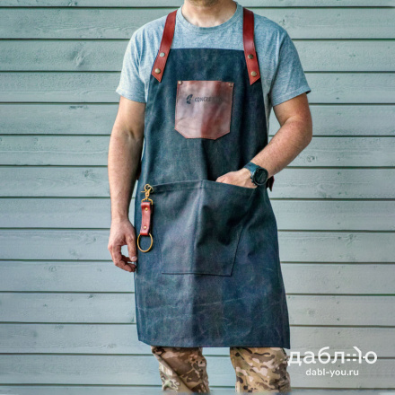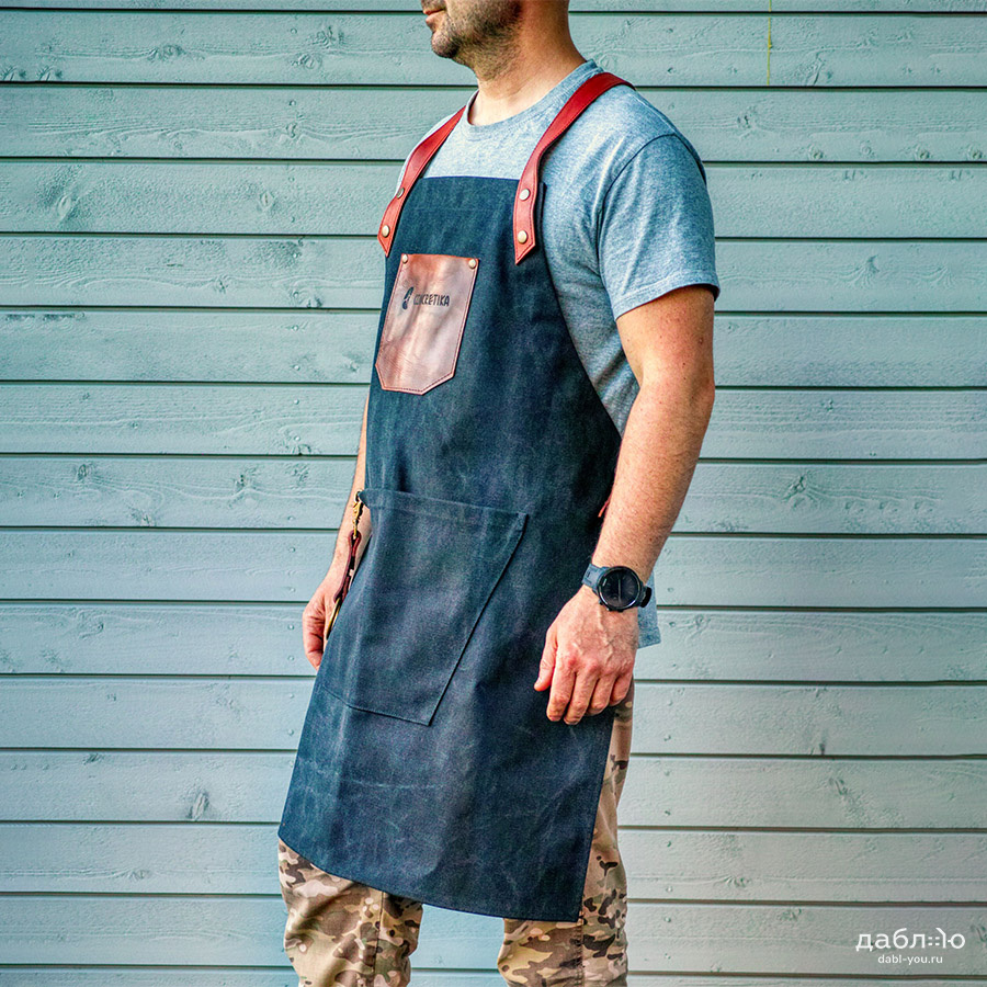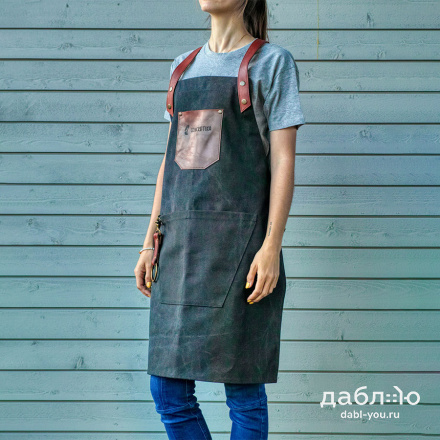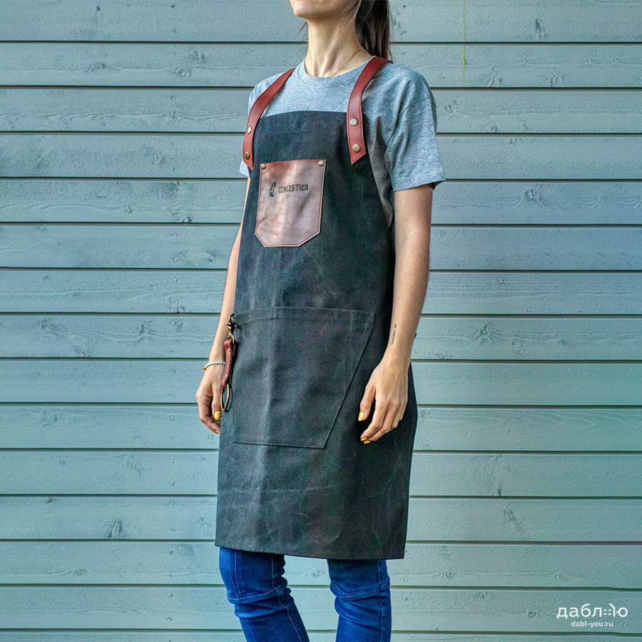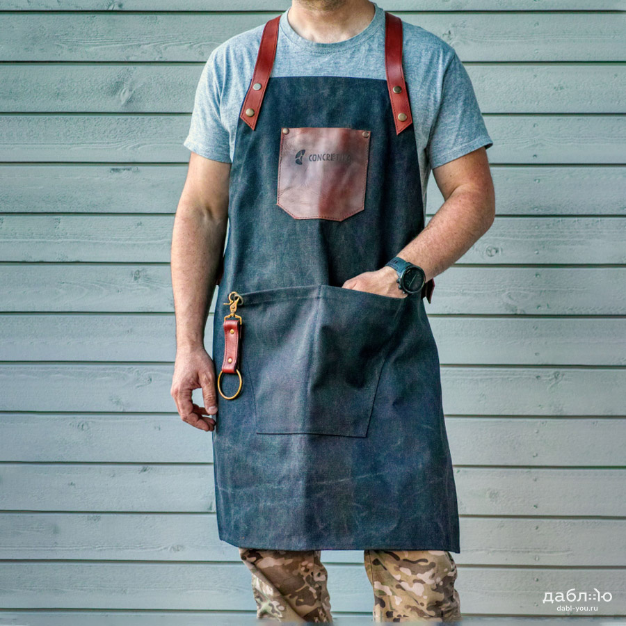 Фартук с кожаными вставками Concretika. Фартук унисекс. Натуральный хлопок в сочетании с кожей экстра-класса, из которой скроены карман и оригинальные лямки. К карману прикреплен держатель для инструментов. Размер единый.Характеристики