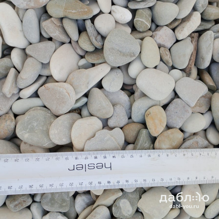 Галька Каспийская 20-40 мм. Бело-желтая галька родом из Кавказа. Имеет несколько фракций, которые можно использовать по отдельности или вместе, создавая красивые мозаики и рисунки у вас дома.- Отгрузка позиции производится со склада!