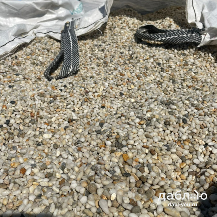 Галька Жемчужная 3-8 мм. Прекрасная галька в бело-желтоватых оттенках. Можно комбинировать с гальками других цветов и фракций, создавая красивые мозаики и рисунки у вас дома.- Отгрузка позиции производится со склада!