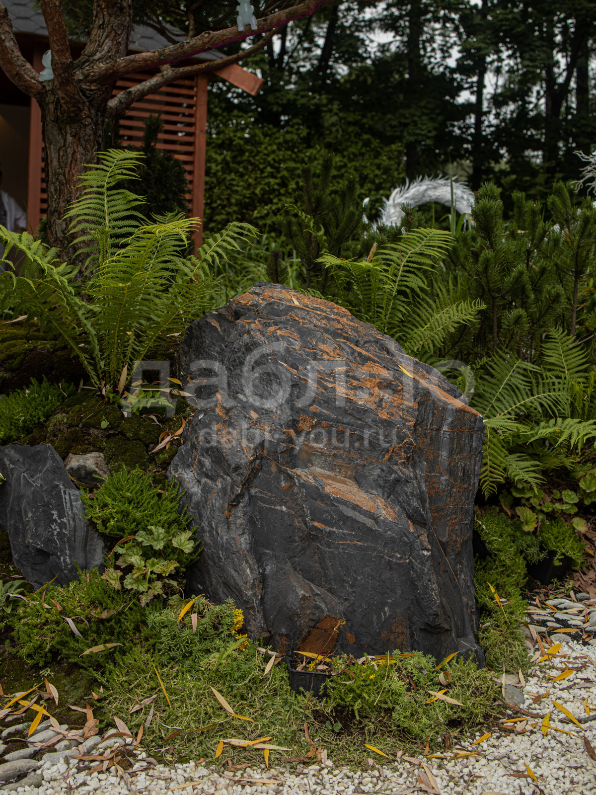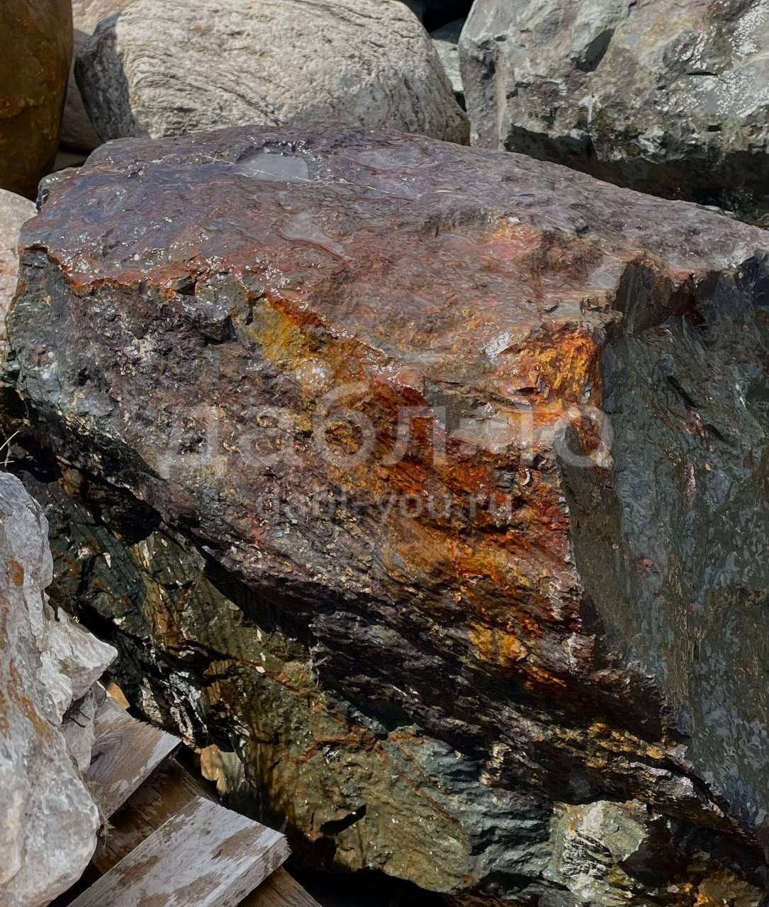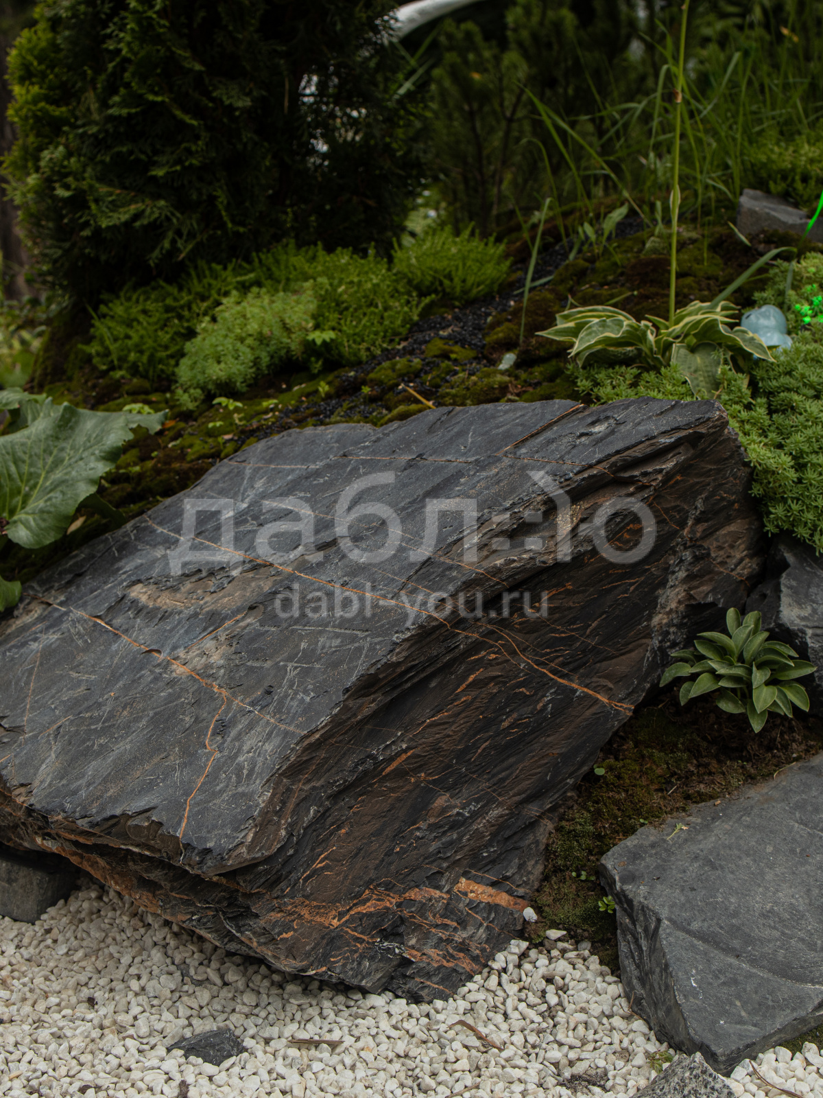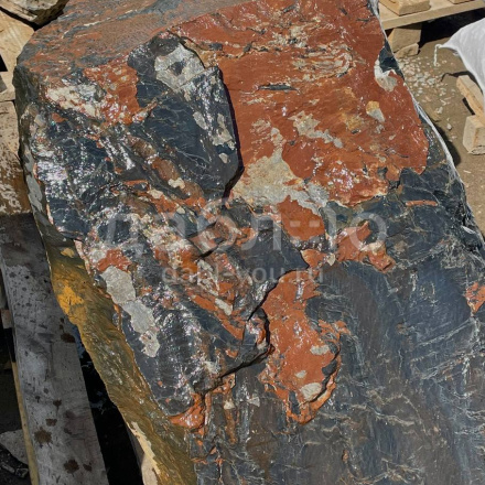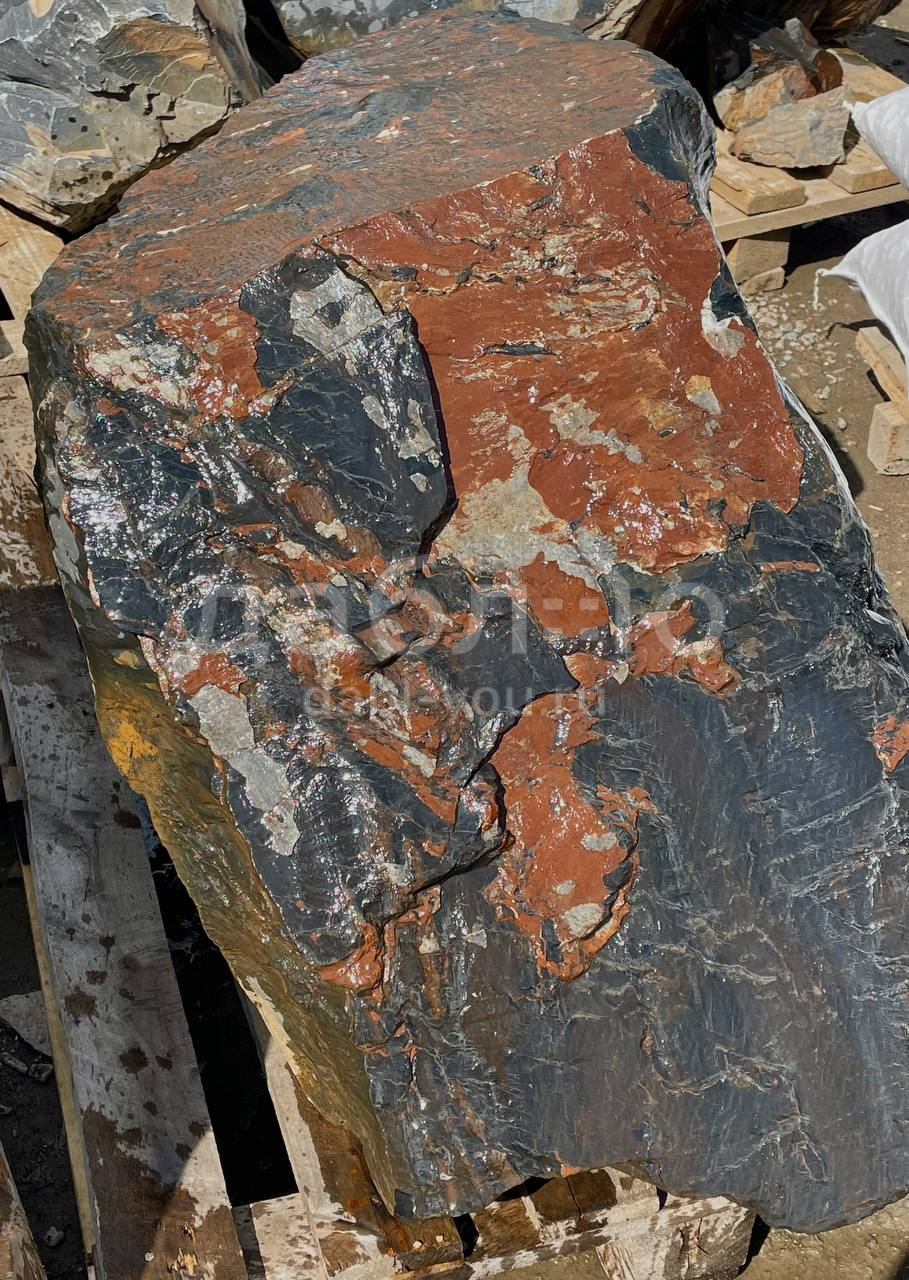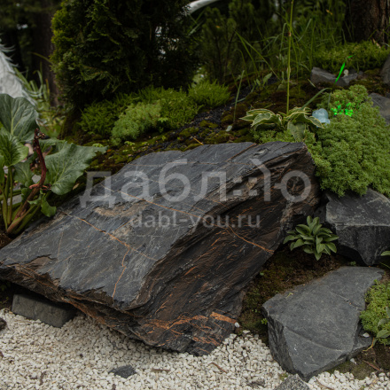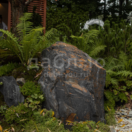Глыба графит лава, с уникальной фактурой черно-серого оттенка и характерными рыжими областями, напоминающим поверхность лавы. Используется в современных ландшафтных проектах и интерьерных композициях.- Область применения: декоративное оформление, ландшафтный дизайн