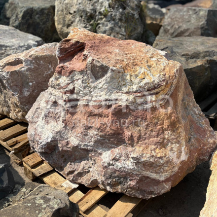 Глыба Шаханский мрамор, с естественной рваной фактурой и богатой цветовой гаммой — от светло-серого до красного с белыми прожилками. Используется для декоративного оформления.Область применения: декоративное оформление, ландшафтный дизайн