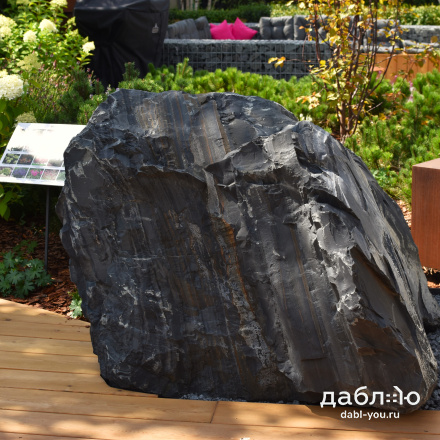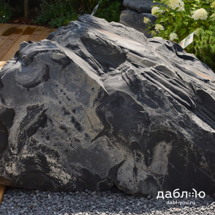 Глыба из шунгита натуральной фактуры, размер варьируется от 400 мм. Цветовая гамма включает черные и темно-серые оттенки с характерным матовым блеском. Такая глыба отлично подойдет для декоративного ландшафтного дизайна или создания акцентных элементов на участке.Вес: зависит от размера