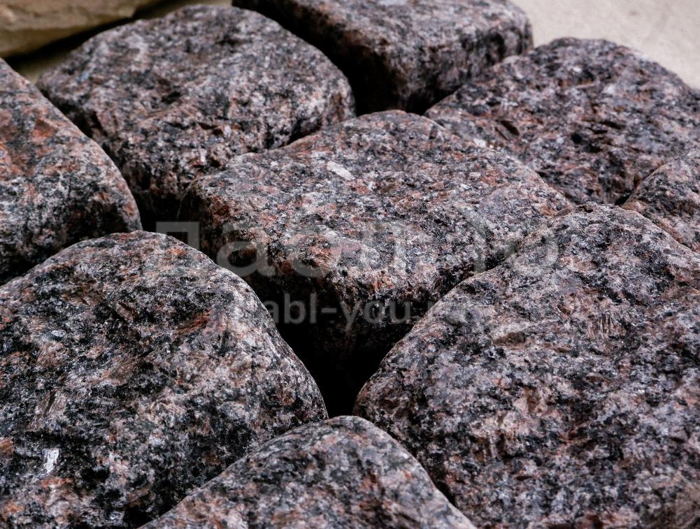 Гранитная брусчатка Дымовская галтованная (с обработкой под "старину") 100х100х50 мм. Изделие из гранита темно-коричневого цвета, предназначено для мощения дорожек и парковок.- Область применения: мощение
