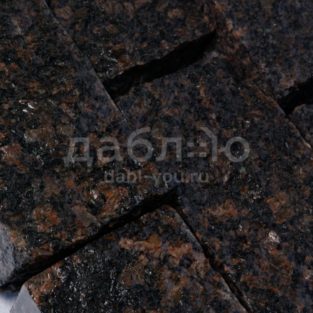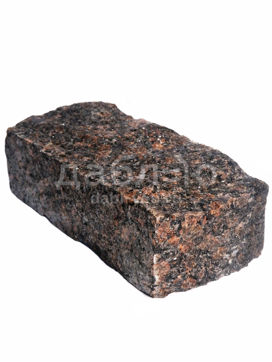 Гранитная брусчатка Дымовская пилено-колотая 150х80х50 мм. Изделие из гранита темно-коричневого цвета, предназначено для мощения дорожек и парковок. Минимальное водопоглощение обеспечивает длительный срок службы материала. Подходит для мощения пешеходных дорожек и парковок.- Область применения: мощение