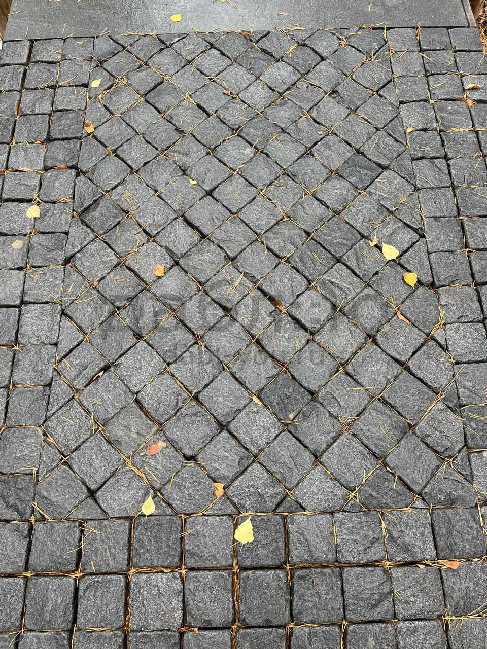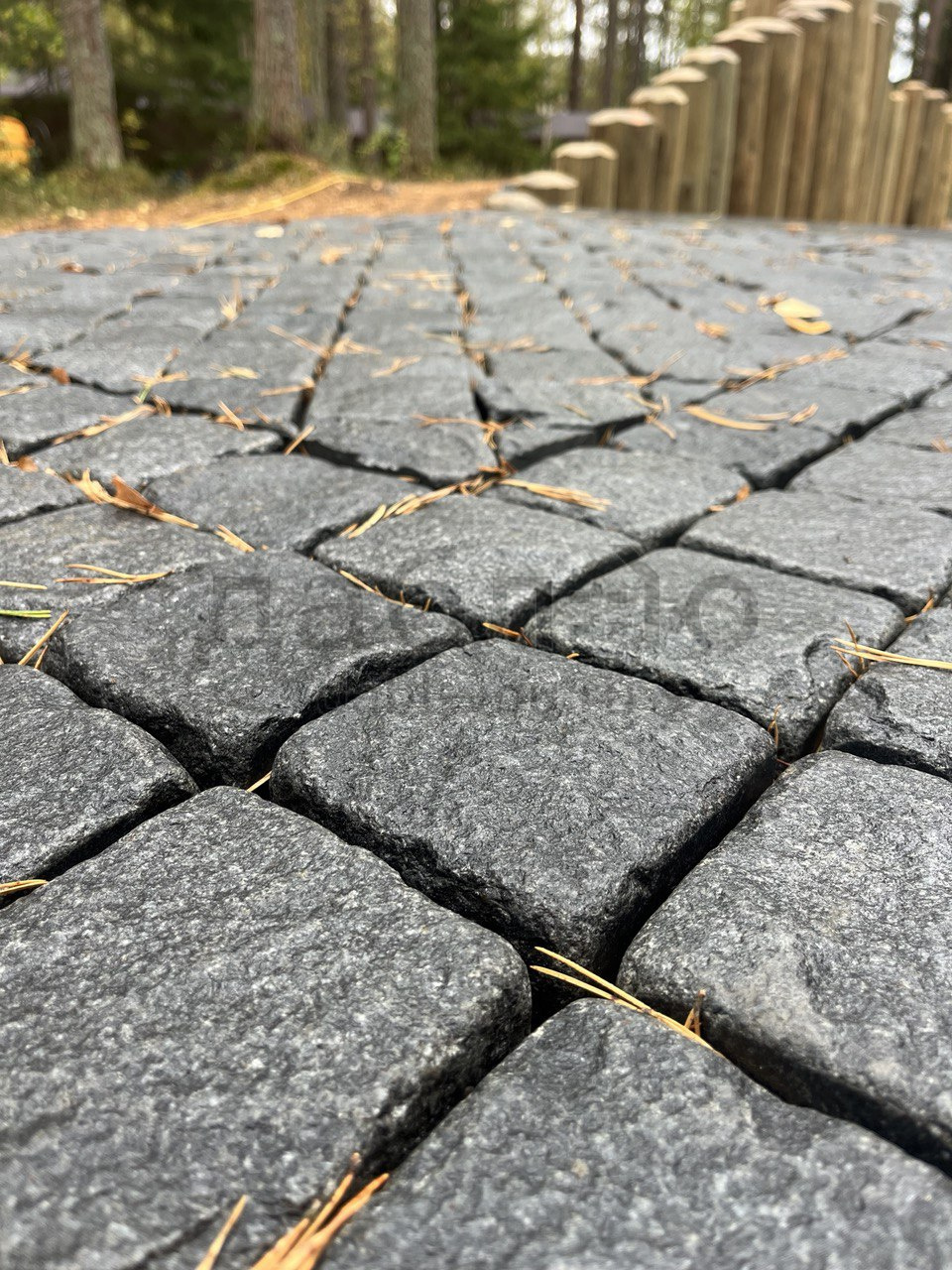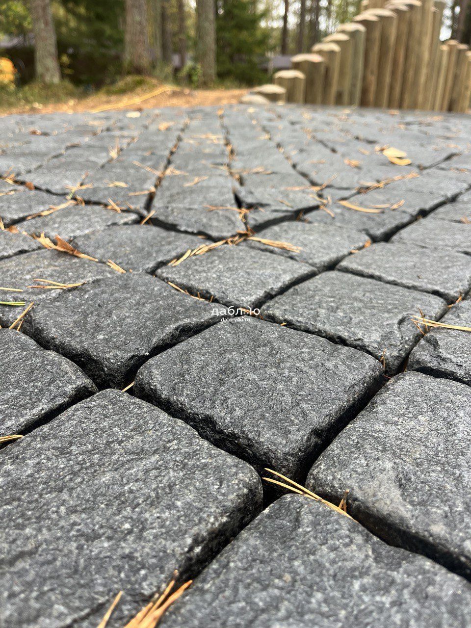 Гранитная брусчатка Габбро-диабаз галтованная, размер 100x100x50 мм. Гранитная брусчатка насыщенного черно-серого цвета,с обработкой "под старину". Брусчатка подойдет как для частного, так и городского использования.- Область применения: мощение