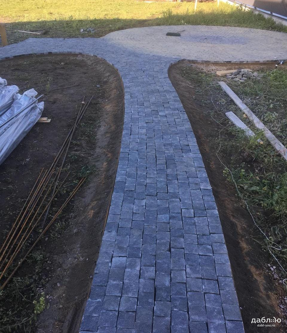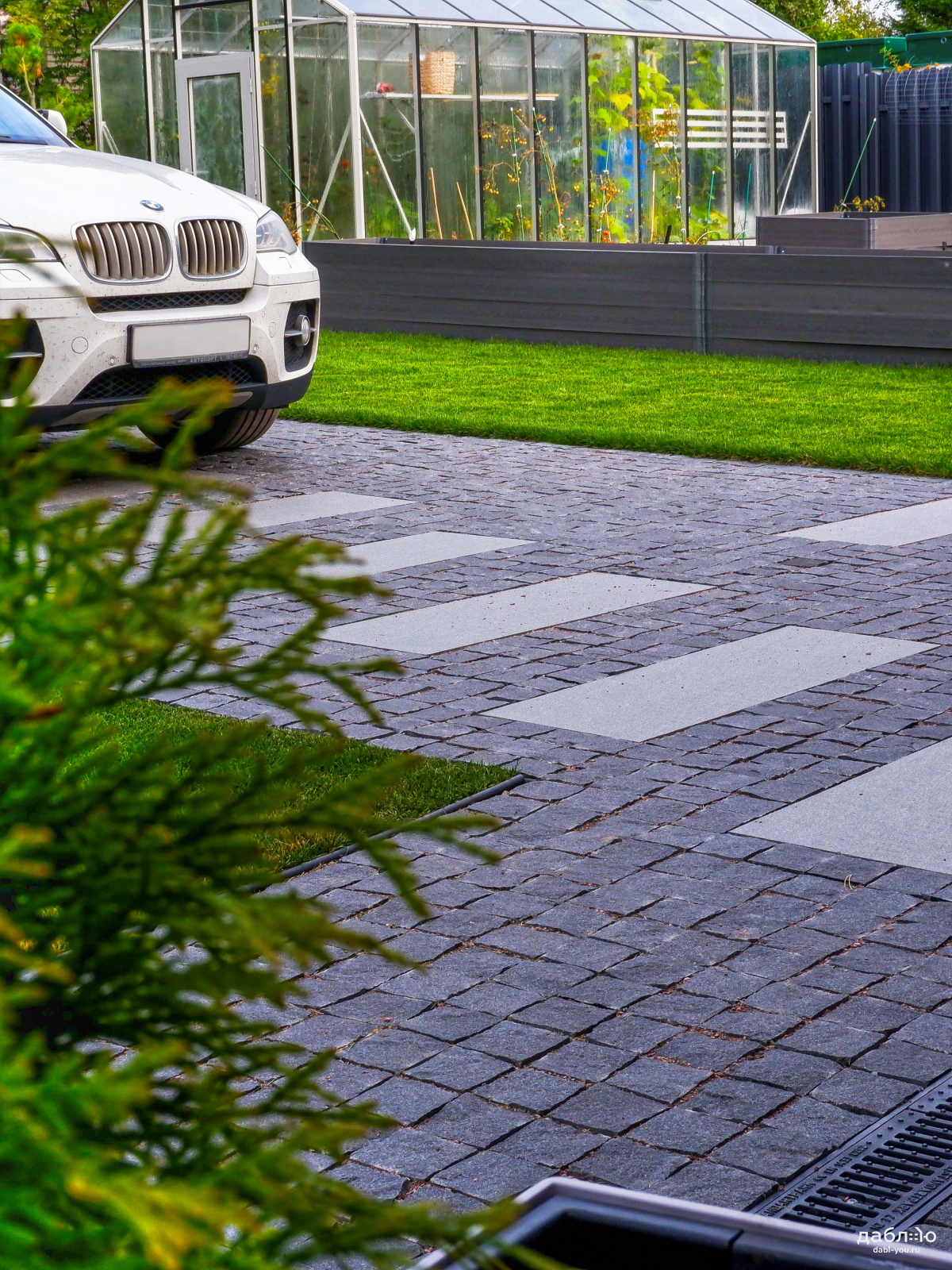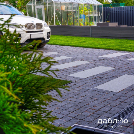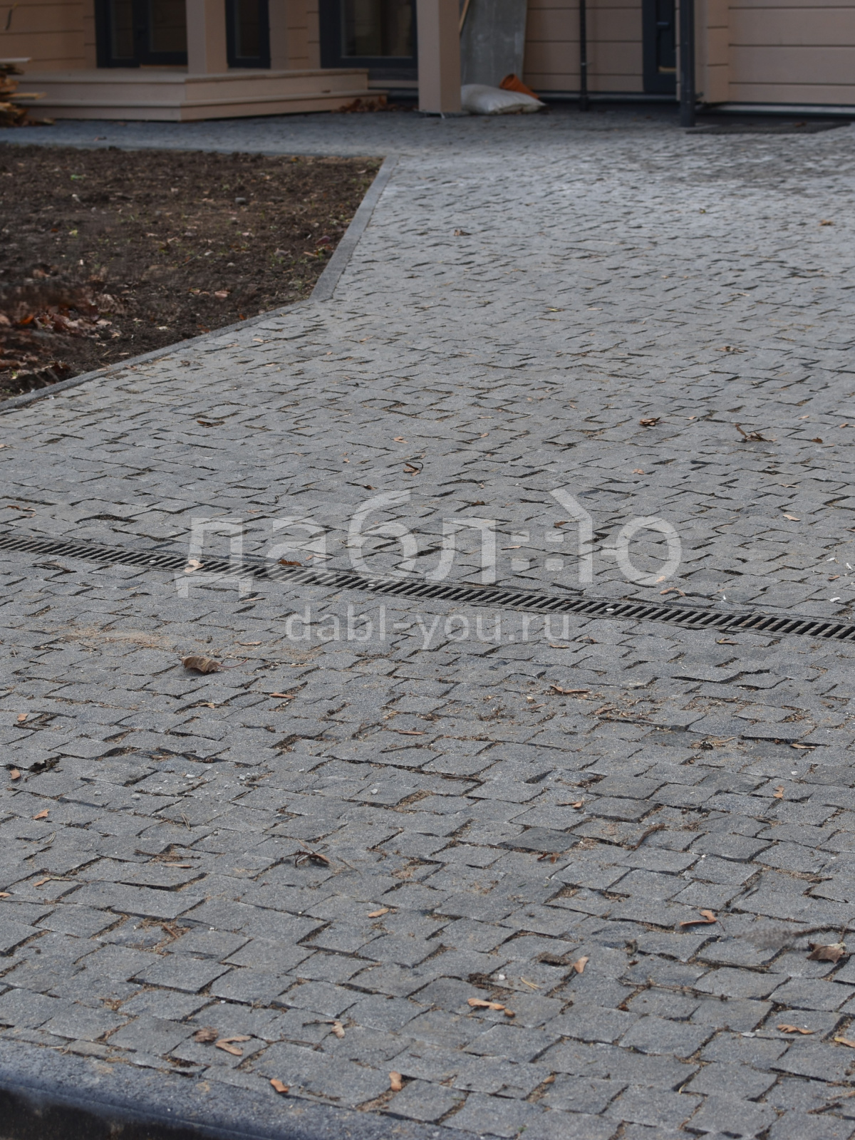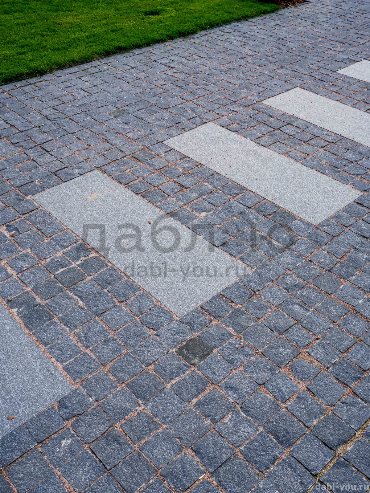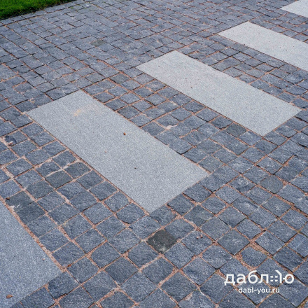 Гранитная брусчатка (боковые грани пиленые и колотые, верх колотый) насыщенного черно-серого цвета. Идеальный вариант для парковок, дорожек и других элементов ландшафтного дизайна. Цвет этой брусчатки прекрасно сочетается с любыми другими оттенками, поэтому может использоваться практически со всеми материалами для мощения.- Область применения: мощение