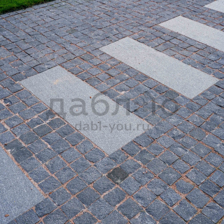 Гранитная брусчатка Габбро-диабаз пилено-колотая 80x80x50 мм