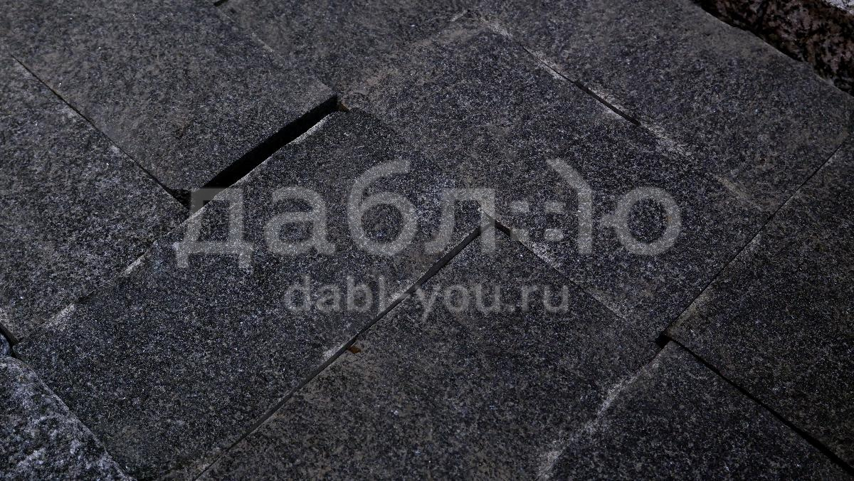 Гранитная брусчатка Габбро-диабаз пилено-колотая 100x200x50 мм (пиленые 5 граней, верх колотый). Гранитная брусчатка черного цвета применяется для мощения парковок и дорожек.- Цена при отгрузке позиции со склада в Санкт-Петербурге!