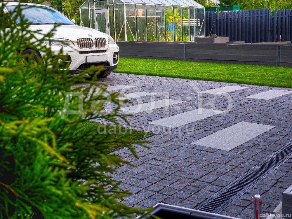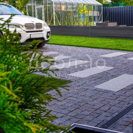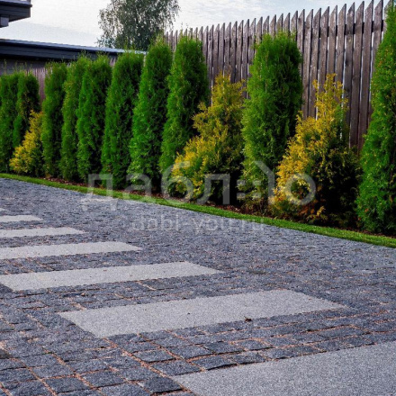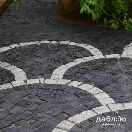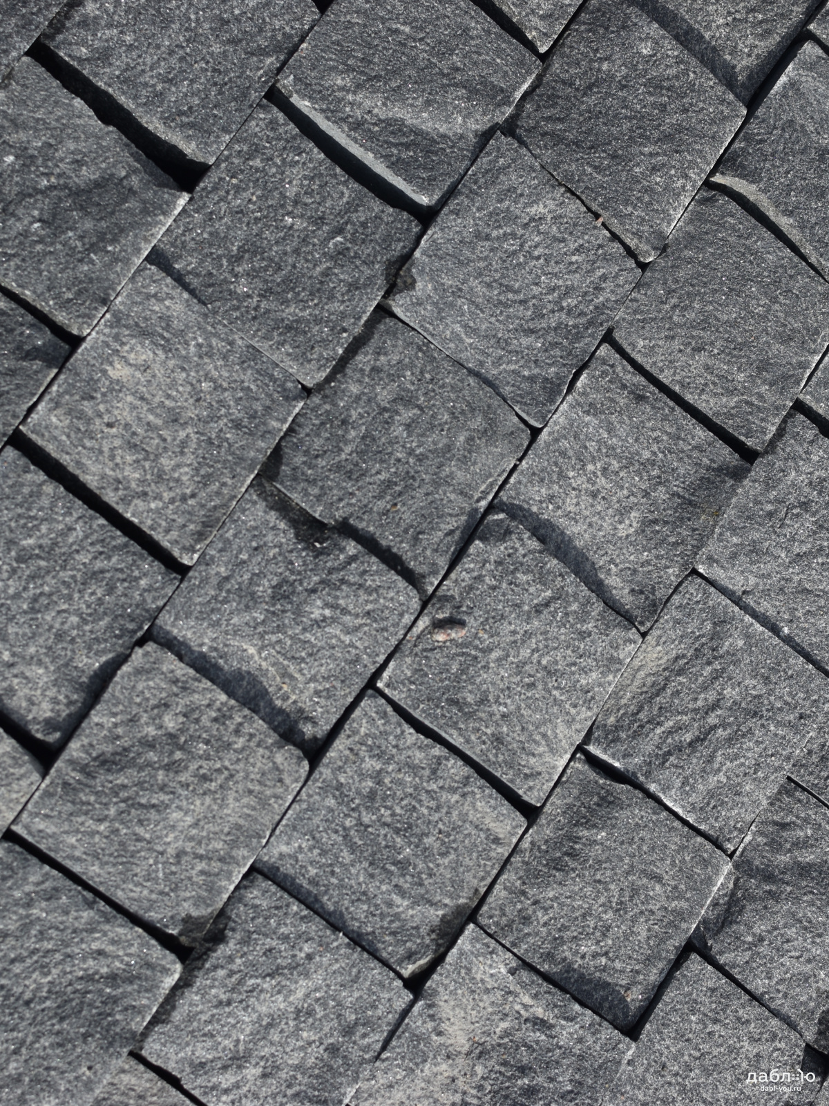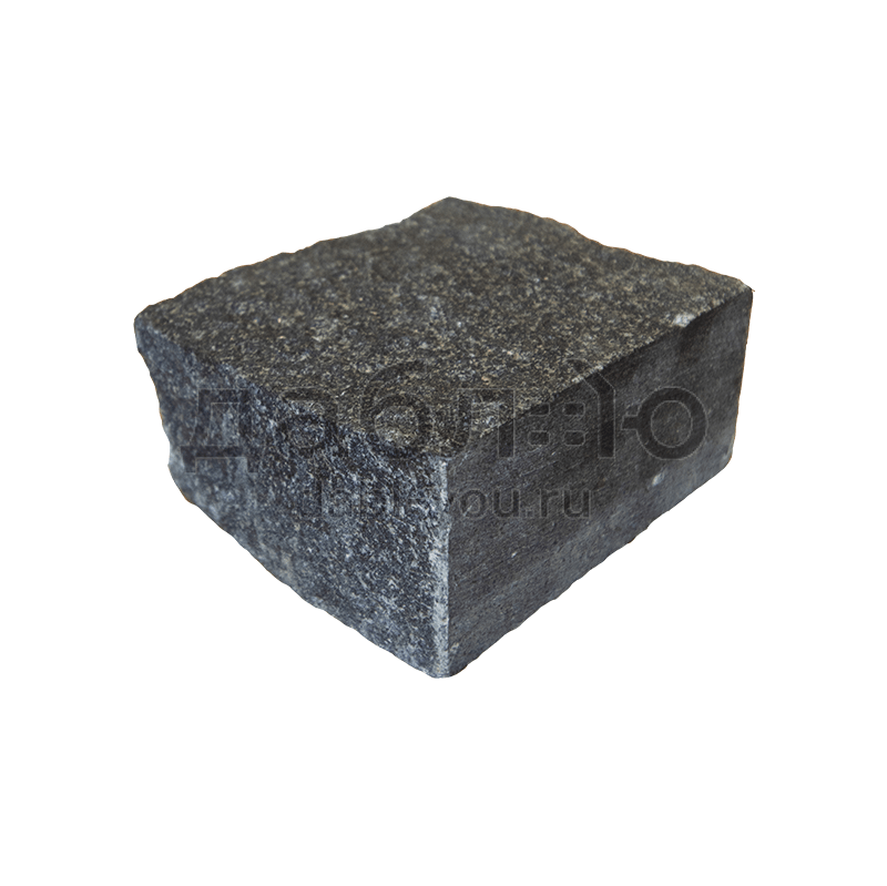 Гранитная брусчатка Габбро-диабаз пилено-колотая (боковые грани пиленые и колотые, верх колотый), 100x100x50 мм. Гранитная брусчатка насыщенного черно-серого цвета. Такая брусчатка подойдет как для частного, так и городского использования.- Область применения: мощение