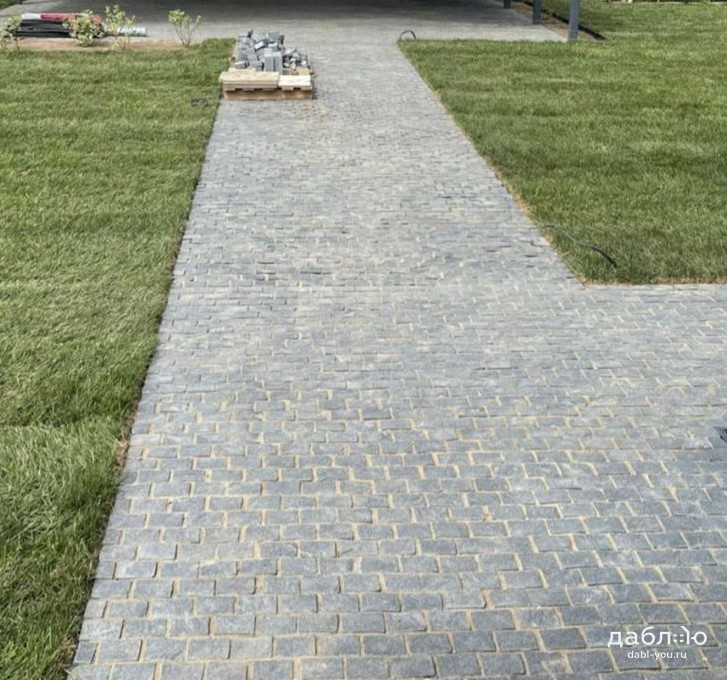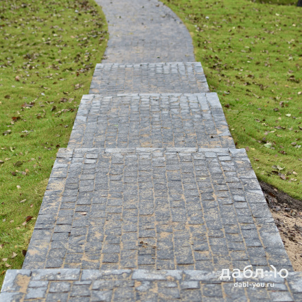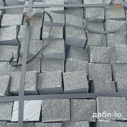 Гранитная брусчатка Габбро-диабаз пилено-колотая (грани пиленые и колотые, верх колотый), размер 100x80x50 мм. Насыщенного черно-серого цвета. Брусчатка подойдет как для частного, так и городского использования.- Область применения: мощение