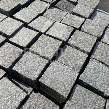 Гранитная брусчатка Галактика пилено-колотая, верх термо.Подойдет для пешеходных зон и парковок, так как гранит является одним из самых надежных материалов для мощения. Прекрасно сочетается с яркой клинкерной брусчаткой.