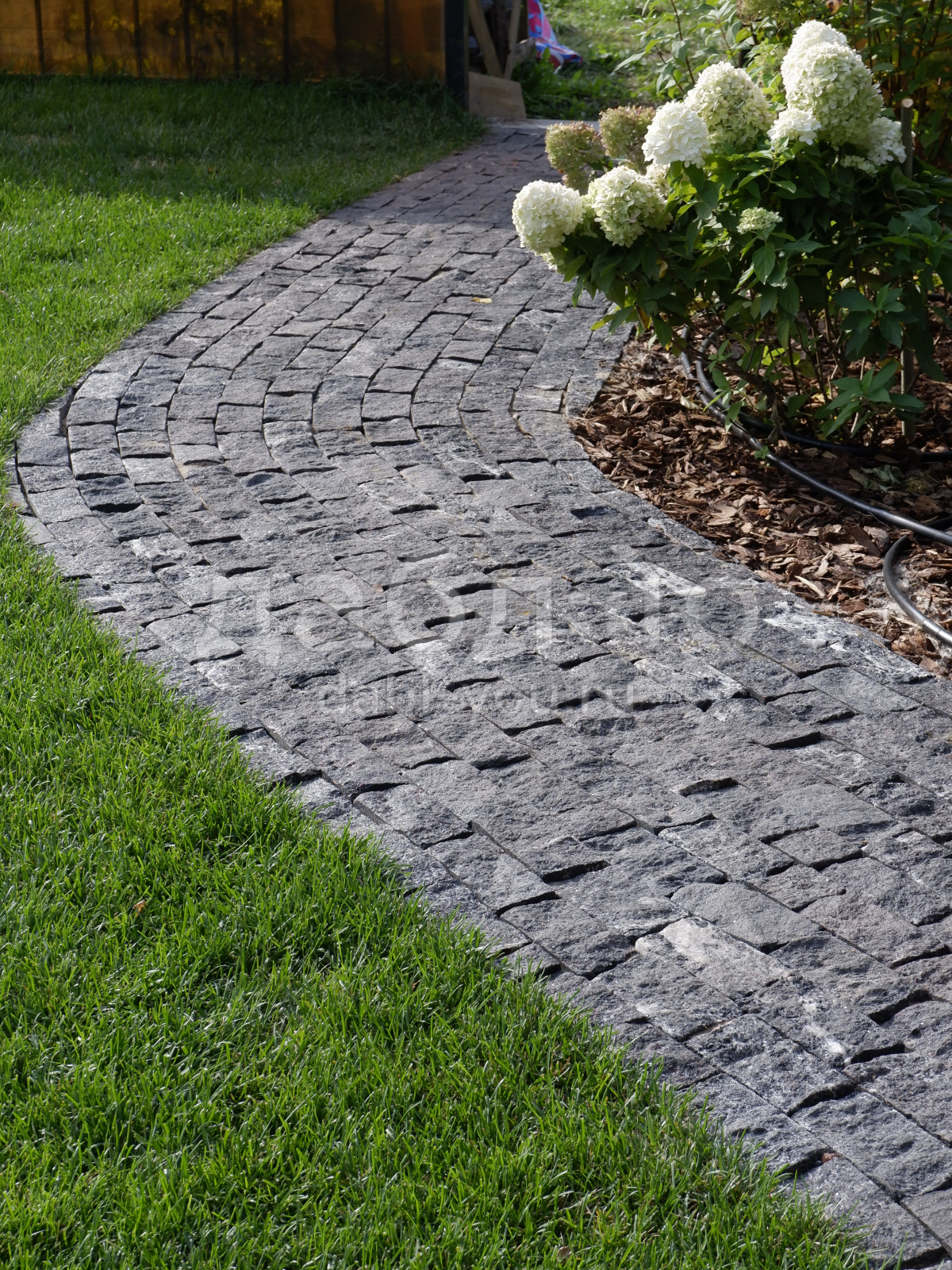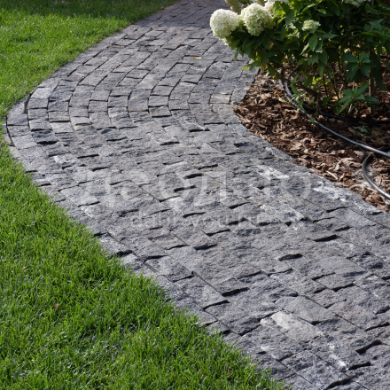 Гранитная брусчатка Гранатовый амфиболит пилено-колотая 150х80х50 мм