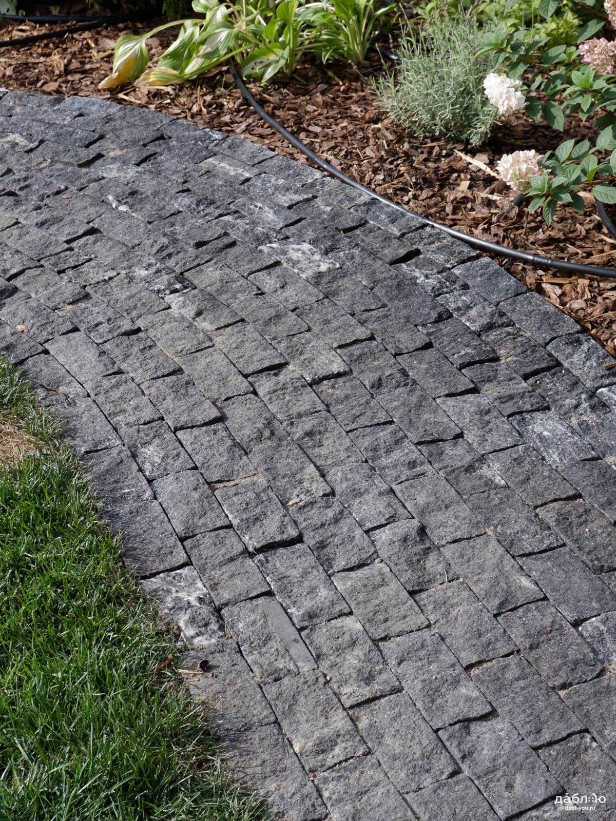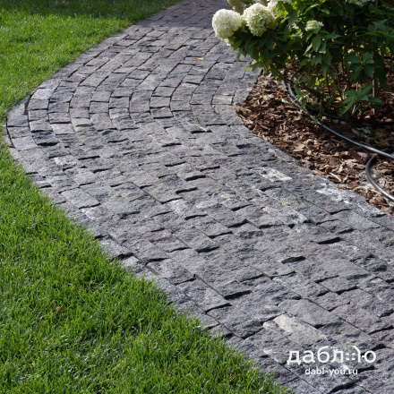 Гранитная брусчатка Гранатовый амфиболит пилено-колотая 150х80х50 мм. Подойдет для пешеходных зон и парковок. Гранитная брусчатка - один из самых надежных материалов для мощения.