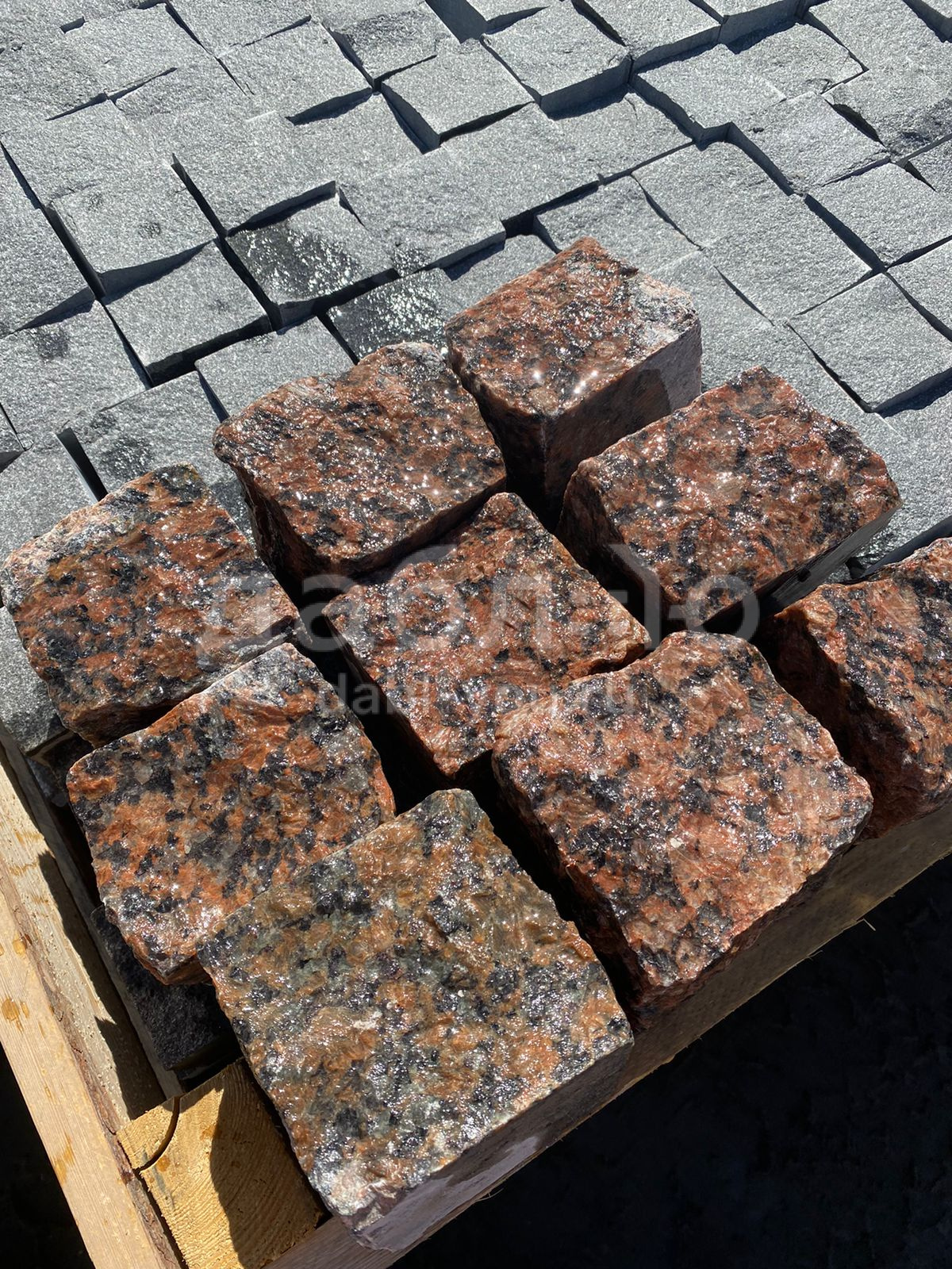 Гранитная брусчатка Красногорская колотая 100х100х50 мм