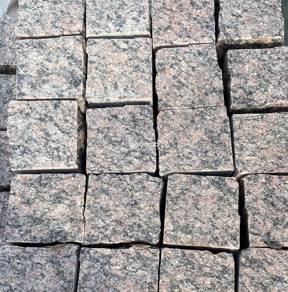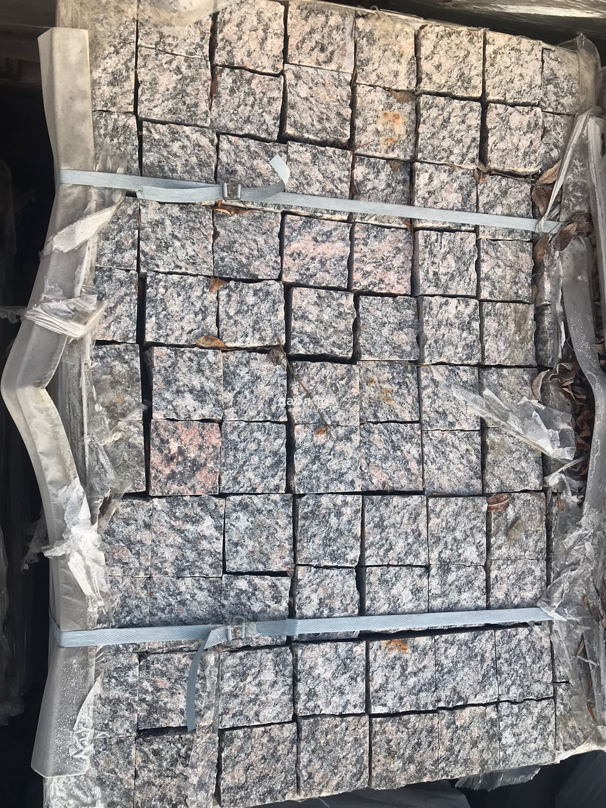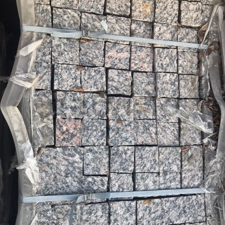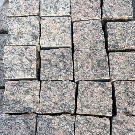 Гранитная брусчатка Ладожская пилено-колотая (верх термо) 100х100х80 мм