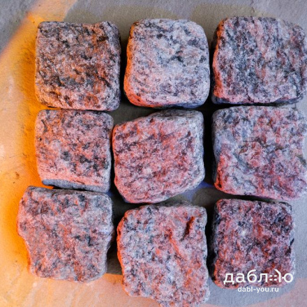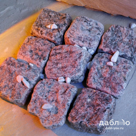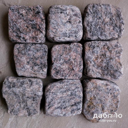 Гранитная брусчатка Ладожская серо-розовая галтованная 100x100x50 мм