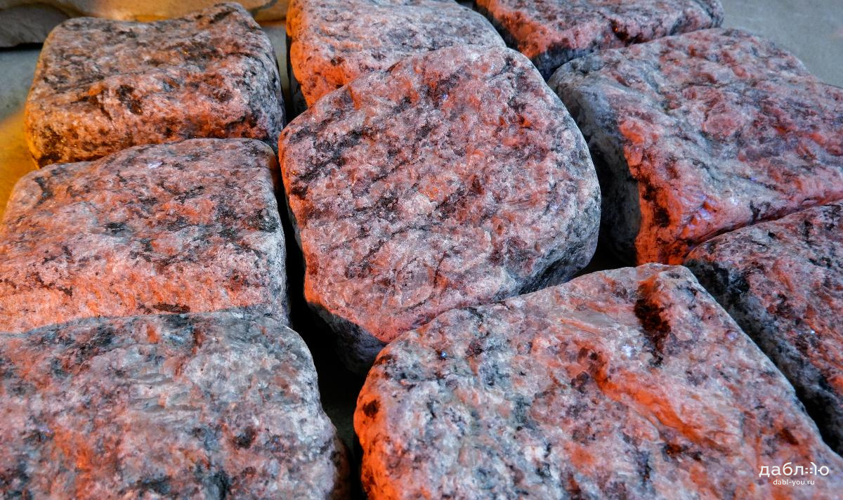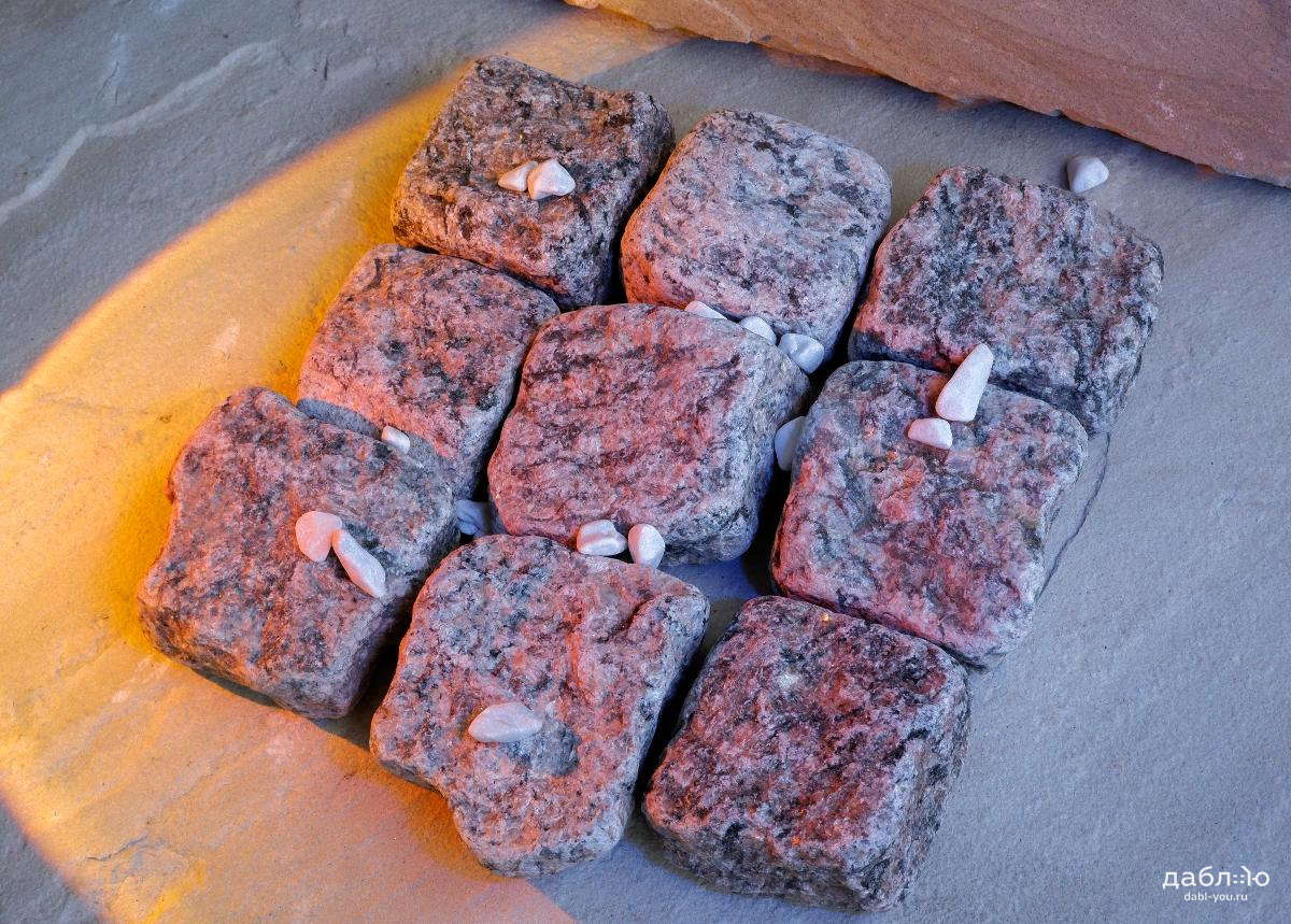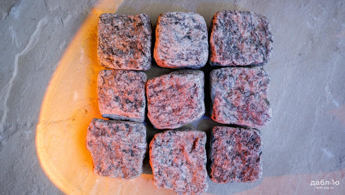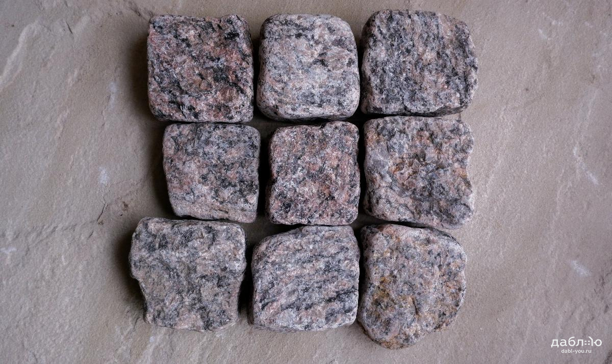 Гранитная брусчатка Ладожская серо-розовая галтованная 100x100x50 мм