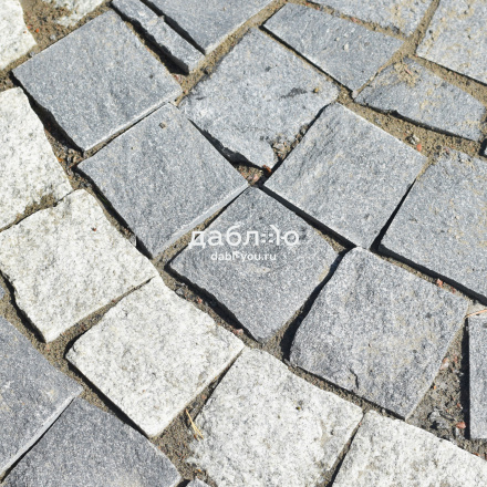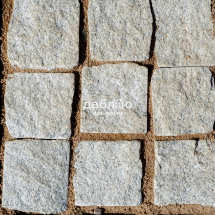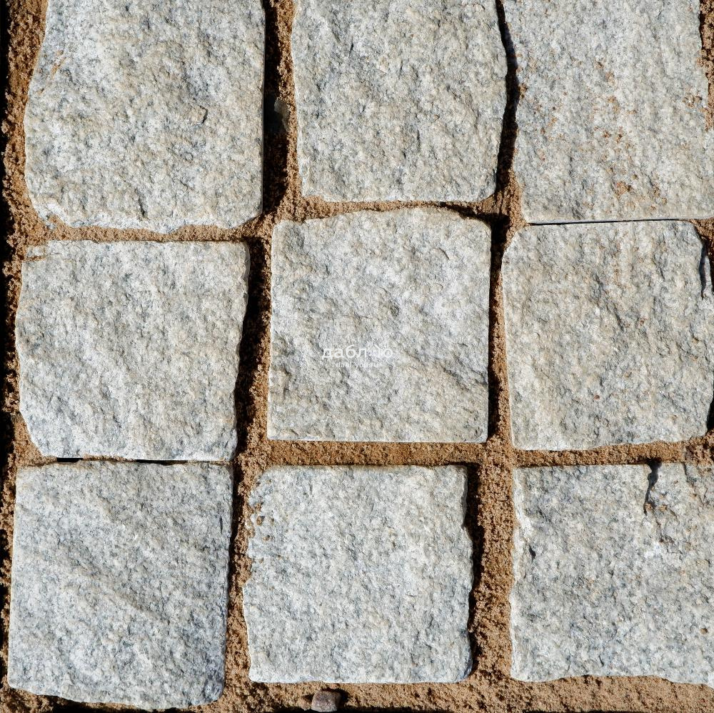Гранитная брусчатка Мансуровская колотая размер 100х100х50 мм. Брусчатка из белого гранита с колотыми гранями для тротуаров и парковок. Подходит для частного сектора и городского мощения.- Область применения: мощение