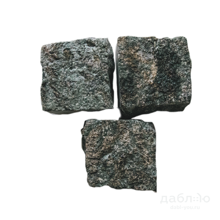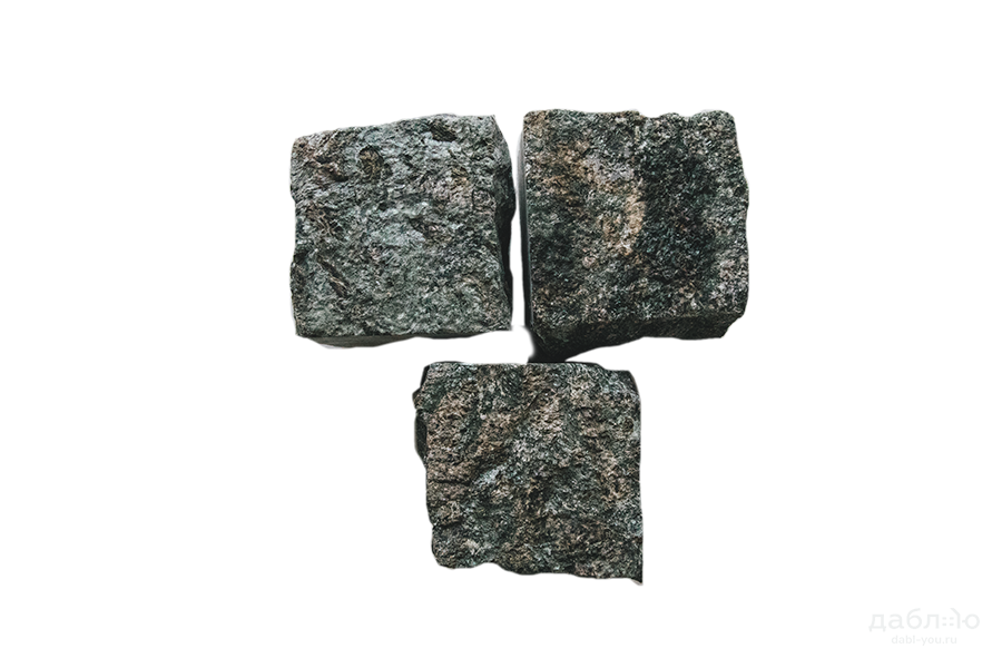 Гранитная брусчатка Сопка Бунтина пилено-колотая, размер 100х100х80 мм. Брусчатка темно-зеленного оттенка. Обладает высокой прочностью, низким водопоглощением, морозостойкая.- Область применения: мощение