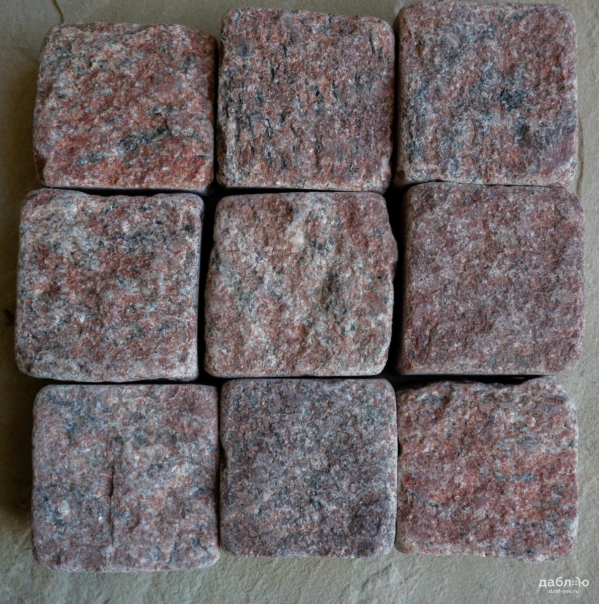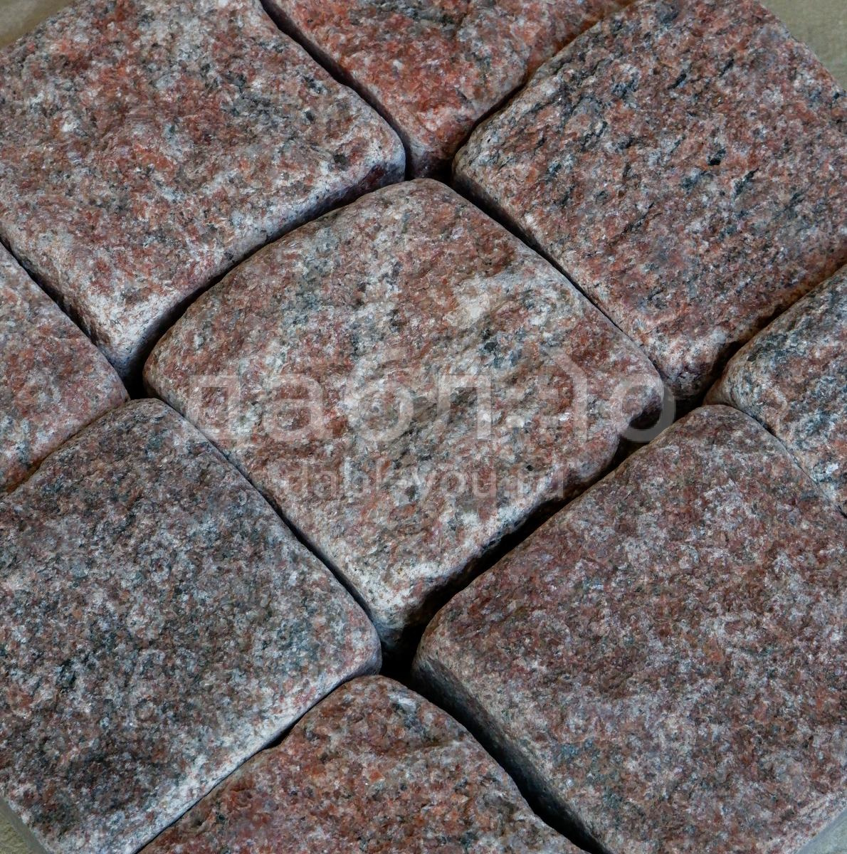 Гранитная брусчатка Сюскюянсаари галтованная в размере 100x100x50 мм. Брусчатка с необычным малиновым цветом и красивым рисунком. Отлично подойдет для мощения дорожек и парковочных зон.- Область применения: мощение