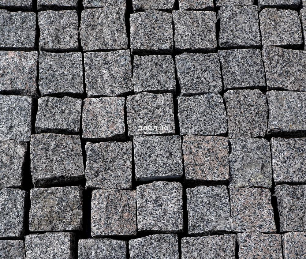 Гранитная брусчатка Возрождение колотая, размер 100х100х50 мм. Классический вариант серой гранитной брусчатки. Подходит для мощения пешеходных дорожек и парковок.- Область применения: мощение