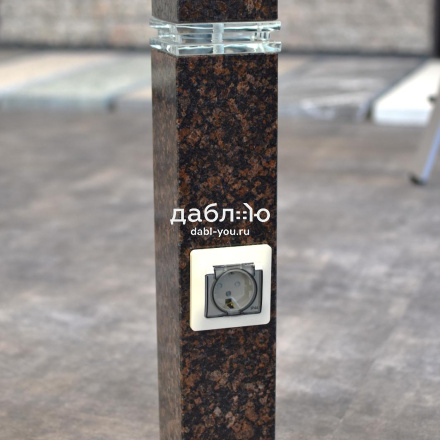 Гранитный светильник Дымовский лайт. Гранитные светильники — отличное дополнение к любому ландшафтному дизайну. Прочная конструкция и уникальный внешний вид делают их идеальным выбором для освещения дорожек и других наружных пространств.- Материал: гранит Дымовский, стекло