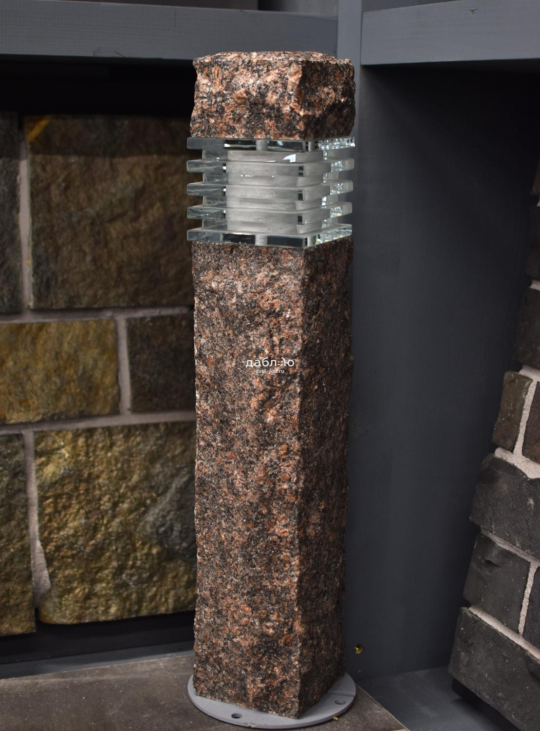 Гранитный светильник Дымовский Рустик. Гранитные светильники — отличное дополнение к любому ландшафтному дизайну. Прочная конструкция и уникальный внешний вид делают их идеальным выбором для освещения дорожек и других наружных пространств.- Материал: Дымовский гранит, стекло