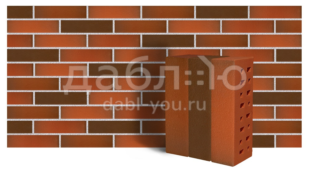 Кирпич облицовочный ЛСР "Ноттингем" красный флэш гладкий, 250х85х65 мм