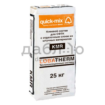 Клеевой состав для утеплителя для СФТК с отделочным слоем из штучных материалов Quick-Mix KMR, 25 кг. Минеральный клеевой состав для приклеивания фасадных пенополистирольных и минераловатных плит в СФТК с керамической облицовкой, а также для приклеивания экструдированного полистирола на цоколях зданий. Высокая адгезионная способность.- Прочность на сжатие ˃ 10 МПа